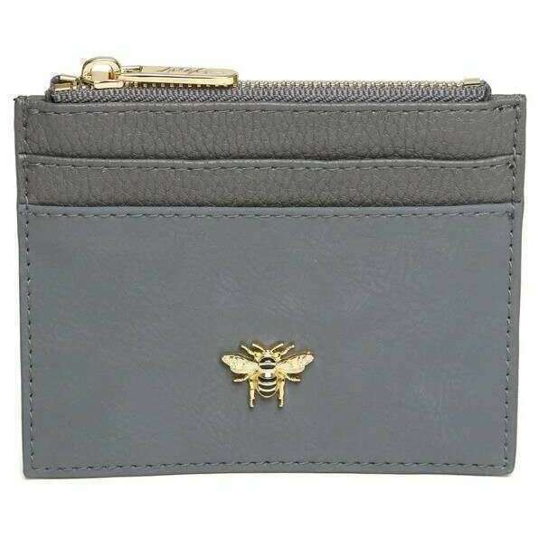 This women's barbican coin purse by the brand Alice Wheeler London is made from 100% vegan faux leather and is showcased in grey. It measures 9cm(height) x 11.5cm(width). All the purses come complete with alice wheeler packaging. The Alice Wheeler London Barbican Coin Purse - Slate Grey is handy and a great way to organise your cards and cash. This purse features a main zippered compartment to store coins and notes and 2 card slots on the front and 2 on the back. Finishing off this purse is the Alice Wheeler bee logo adorned to the front. Made from high-quality vegan faux leather means that this purse is completely eco-friendly.