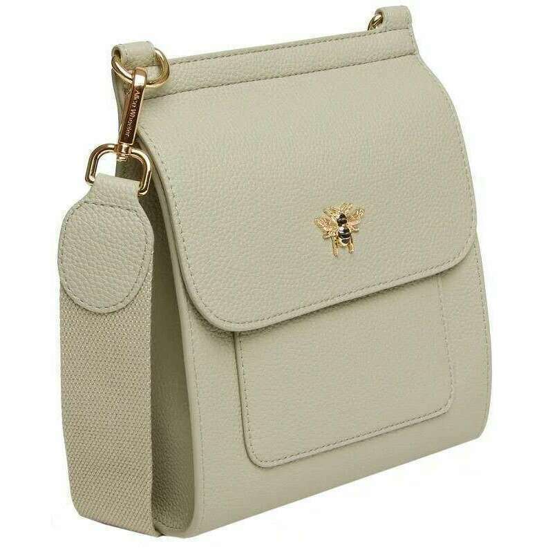Brought to you by the brand Alice Wheeler London, this pistachio green women's bloomsbury crossbody bag is made from 100% vegan faux leather. It measures 18cm(height) x 20cm(width) x 12cm(depth). All the bags come complete in alice wheeler london packaging. The Alice Wheeler London Bloomsbury Crossbody Bag - Pistachio Green will make a stunning and stylish everyday bag or will accessorise your evening outfit when at a more formal event. Fitted with an adjustable cross body strap you can find a length that best suits you for comfortable carrying. The Bloomsbury offers a good-sized main section and is secured with a flap and magnetic clasp closure. The iconic and elegant Bumble Bee logo rounds off this gorgeous design as well as named branding on the back.