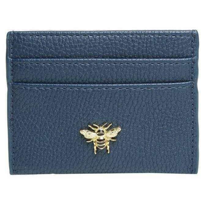 This bow card holder for women is fashioned by the brand Alice Wheeler London in a navy colour and is made from 100% vegan faux leather. It measures 7.5cm(height) x 10cm(width) x 1cm(depth). All the purses come complete with alice wheeler packaging. The Alice Wheeler London Bow Card Holder - Navy is handy and a great way to organise your cards and cash. This purse features a main compartment to store coins and notes and 2 card slots on the front and 2 on the back. Finishing off this purse is the Alice Wheeler honeybee logo adorned to the front. Made from high-quality vegan faux leather means that this purse is completely eco-friendly.