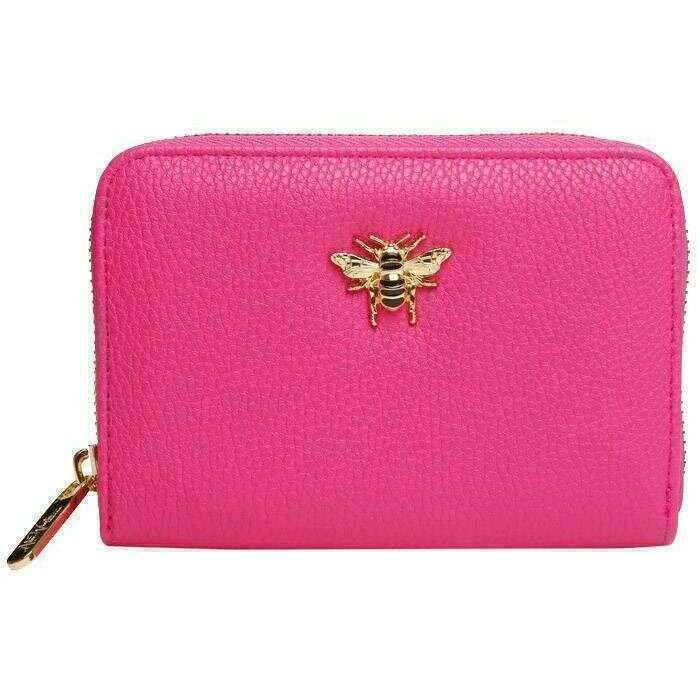 This well made women's bromley purse from Alice Wheeler London comes in a hot pink colour and is manufactured from 100% vegan faux leather. It measures 10cm(height) x 14cm(width) x 2cm(depth). It is recommended to wipe clean with damp cloth to keep this purse in good condition. All the purses come complete with alice wheeler london packaging. The Alice Wheeler London Bromley Purse - Hot Pink is handy and a great way to organise all of your money. This purse features two separate compartments to store notes or receipts, six card slots and a zipper pouch for coins. Finishing off this purse is the iconic bee logo and branding on the back. Made from high-quality vegan faux leather means that this purse is completely eco-friendly.