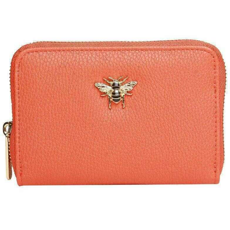 Perfect for women is this Alice Wheeler London orange bromley purse, it is also made from 100% vegan faux leather. It measures 10cm(height) x 14cm(width) x 2cm(depth). It is recommended to wipe clean with damp cloth to keep this purse in good condition. All the purses come complete with alice wheeler london packaging. The Alice Wheeler London Bromley Purse - Orange is handy and a great way to organise all of your money. This purse features two separate compartments to store notes or receipts, six card slots and a zipper pouch for coins. Finishing off this purse is the iconic bee logo and branding on the back. Made from high-quality vegan faux leather means that this purse is completely eco-friendly.