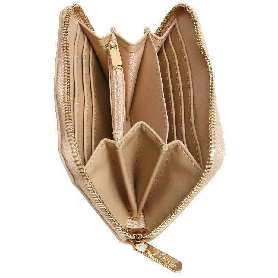 • Zipper Closure , 2 Separate Compartments , Zipper Coin Pouch , Holds 6 Cards , Gold Hardware