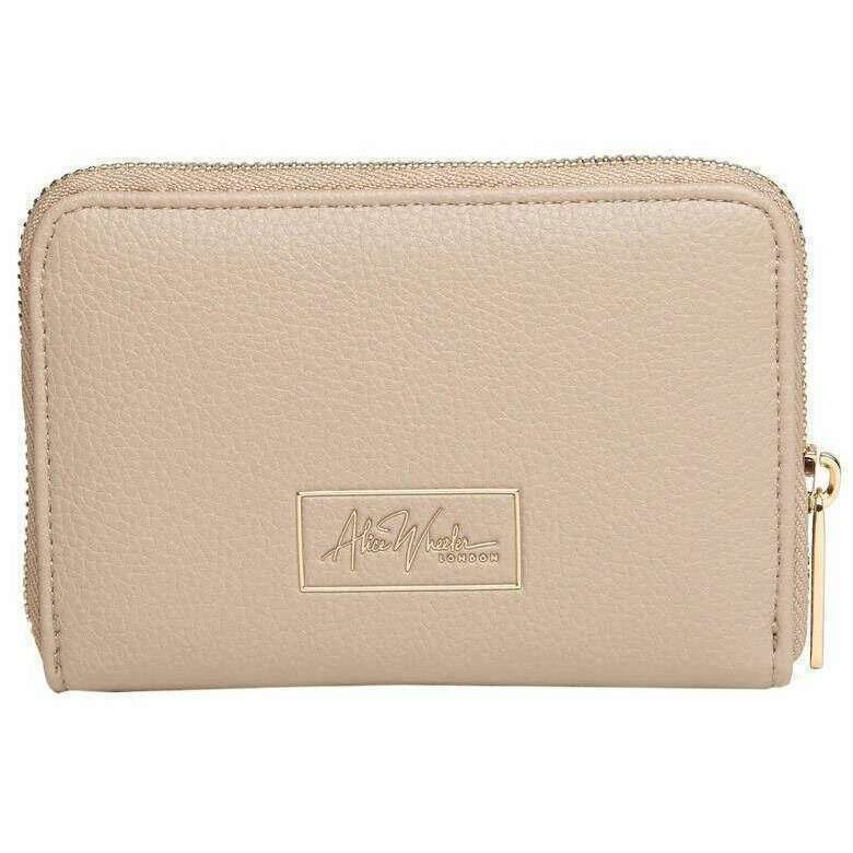 Designer Alice Wheeler London has brought you this women's 100% vegan faux leather purse using stone beige tones. It measures 10cm(height) x 14cm(width) x 2cm(depth). It is recommended to wipe clean with damp cloth to keep this purse in good condition. All the purses come complete with alice wheeler london packaging. The Alice Wheeler London Bromley Purse - Stone Beige is handy and a great way to organise all of your money. This purse features two separate compartments to store notes or receipts, six card slots and a zipper pouch for coins. Finishing off this purse is the iconic bee logo and branding on the back. Made from high-quality vegan faux leather means that this purse is completely eco-friendly.