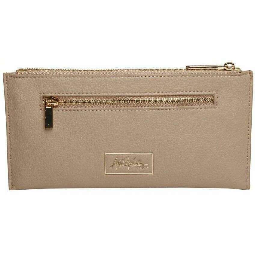 Brought to you by the brand Alice Wheeler London, this stone beige women's brunel purse is made from 100% vegan faux leather. It measures 10.5cm(height) x 21cm(width) x 1cm(depth). It is recommended to wipe clean with damp cloth to keep this purse in good condition. All the purses come complete with alice wheeler london packaging. The Alice Wheeler London Brunel Purse - Stone Beige is handy and a great way to organise all of your money. This purse features a compartment to store notes or receipts, room for your cards and an exterior zipper pouch for coins, as well as a practical zipped pocket at the back. Finishing off this purse is the iconic bumble bee embellishment logo and branding on the back. Made from high-quality vegan faux leather means that this purse is completely eco-friendly.