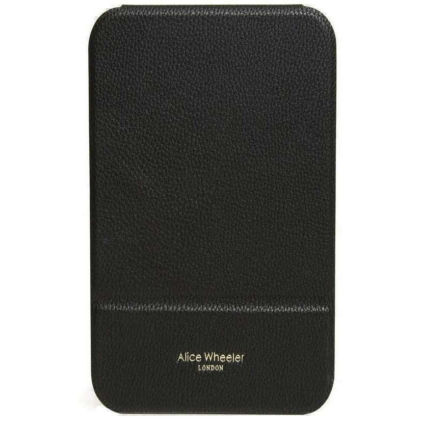 This well made women's folding travel mirror from Alice Wheeler London comes in a black colour and is manufactured from 100% vegan faux leather. It measures 20cm(height) x 15cm(width). All the mirrors come complete with alice wheeler packaging. The Alice Wheeler London Folding Travel Mirror - Black is a must-have if you are a frequent traveller or want a gorgeous portable mirror for your makeup vanity. Featuring a crystal-clear mirror with a sleek frameless design and subtle Alice Wheeler branding printed on the top, and a convertible case that doubles as a case and a stand great for propping up wherever to apply your makeup without the hassle of having to hold the mirror. The lightweight and slim design makes this ideal for travelling.
