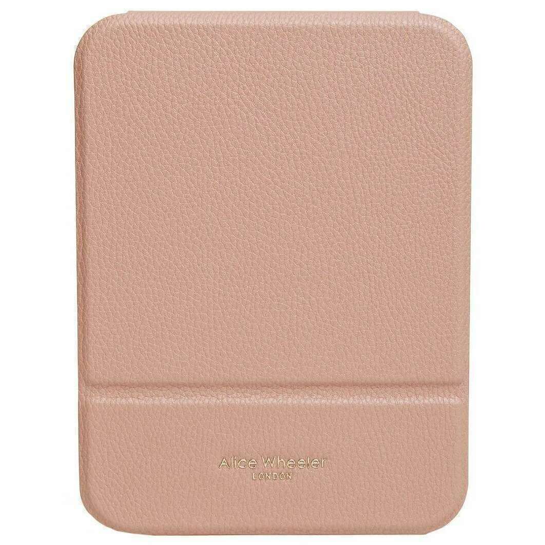 Brought to you by the brand Alice Wheeler London, this pink women's folding travel mirror is made from 100% vegan faux leather. It measures 20cm(height) x 15cm(width). All the mirrors come complete with alice wheeler packaging. The Alice Wheeler London Folding Travel Mirror - Pink is a must-have if you are a frequent traveller or want a gorgeous portable mirror for your makeup vanity. Featuring a crystal-clear mirror with a sleek frameless design and subtle Alice Wheeler branding printed on the top, and a convertible case that doubles as a case and a stand great for propping up wherever to apply your makeup without the hassle of having to hold the mirror. The lightweight and slim design makes this ideal for travelling.