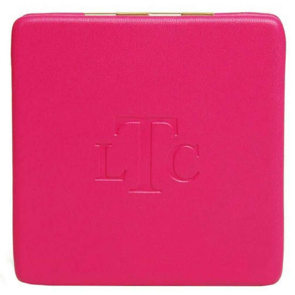 This women's ltc compact mirror by the brand Alice Wheeler London is made from 100% vegan faux leather and is showcased in pink. It measures 7.3cm(height) x 7.3cm(width). All the compacts come complete with alice wheeler london packaging. The Alice Wheeler London LTC Compact Mirror - Pink is the perfect accessory that is essential to carry around with you in your handbag. The London Train Company branding is embedded onto the front of it. Inside is a mirror with a twin gold-toned metal frame which is ideal for those day to day touch ups.