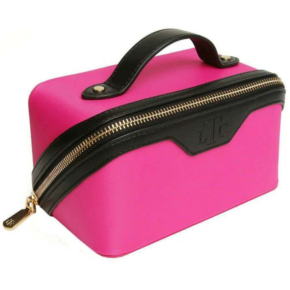 Perfect for women is this Alice Wheeler London pink/black ltc two-tone mini train case, it is also made from 100% vegan faux leather. It measures 9.5cm(height) x 18cm(width) x 9.5cm(depth). All the bags come complete with alice wheeler london packaging. The Alice Wheeler London LTC Two-Tone Mini Train Case - Pink/Black is a mini version of the popular Train case and is a stylishly cute way to carry your essential toiletries, make-up or other travel essentials. Inside is fully lined and includes internal pockets for your smaller bits plus as a dual main section so it is easy to organise your things. Everything is seals inside securely with its zipped closure and is finished with the debossed branding.