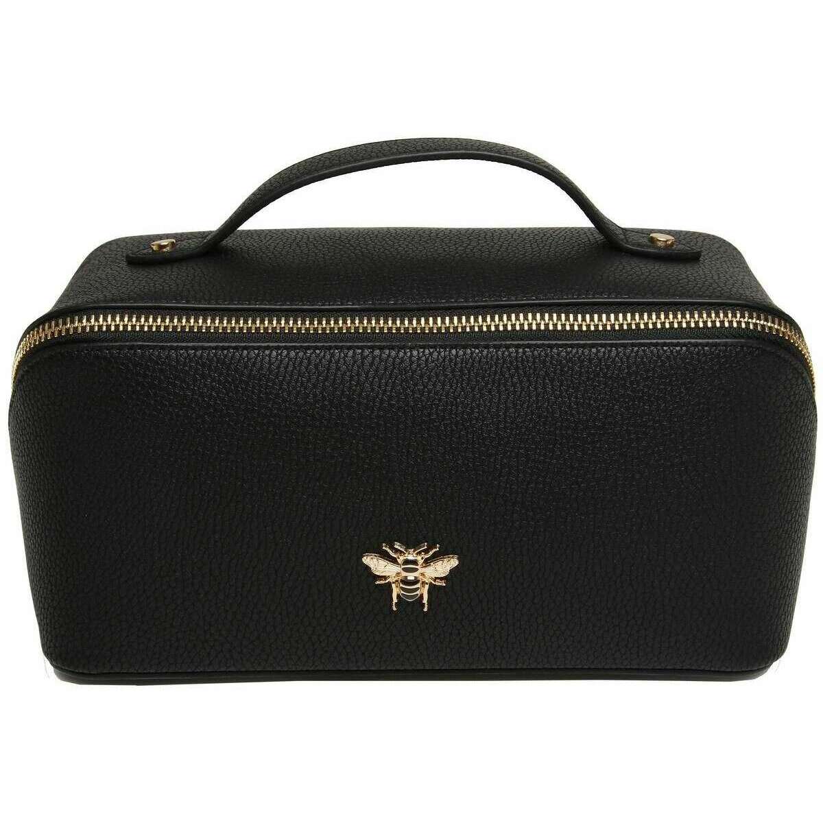 This women's luxury travel train case by the brand Alice Wheeler London is made from 100% vegan faux leather and is showcased in black. It measures 12cm(height) x 24cm(width) x 12cm(depth). It is recommended to wipe clean with cloth to keep this bag in good condition. All the bags come complete with alice wheeler packaging. The Alice Wheeler London Luxury Travel Train Case - Black is the perfect travel case for toiletries when going away or storage for your make-up and beauty products. The luxury design features a zipped closure and opens up to a large main compartment with internal pockets for your smaller essentials. The top handle makes it effortless to transport and the stylish branding on both sides adds an elegant touch.