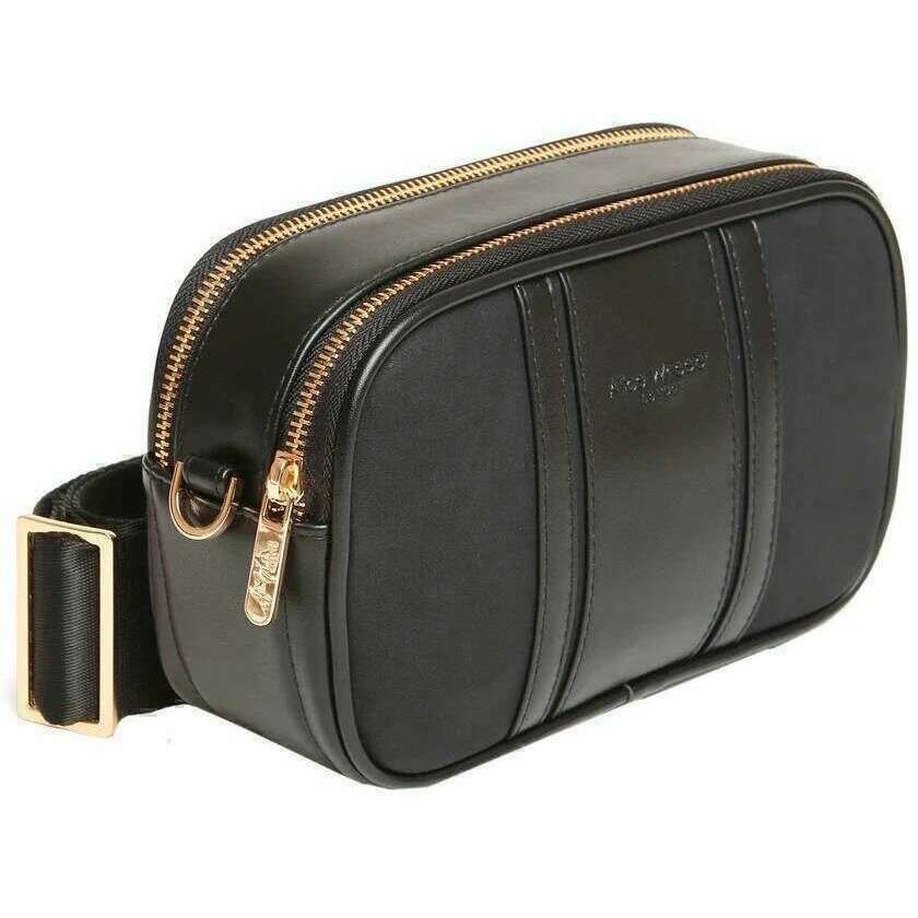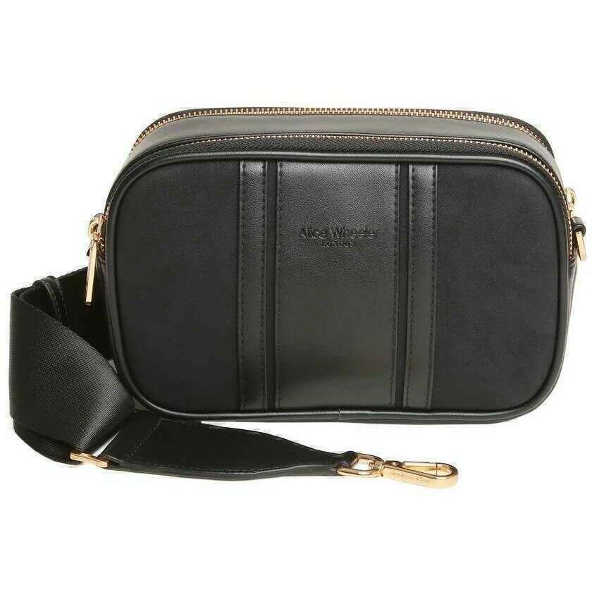 Manufactured from 100% nappa finish vegan faux leather is this black women's madrid camera crossbody bag by the designer Alice Wheeler London. It measures 12cm(height) x 20cm(width) x 6cm(depth). All the bags come complete with alice wheeler packaging. The Alice Wheeler London Madrid Camera Crossbody Bag - Black is a stunning hands-free bag to ensure comfort and practicality. The double zip compartments and the internal side pocket allows extra storage to ensure all of your essential items are with you on the go. This stunning striped design features the signature logo which still gives that simple but elegant look. The detachable adjustable strap co-ordinates with the bag allowing you it to match your outfits perfectly. This bag is made from vegan faux leather means that this bag is completely eco-friendly.