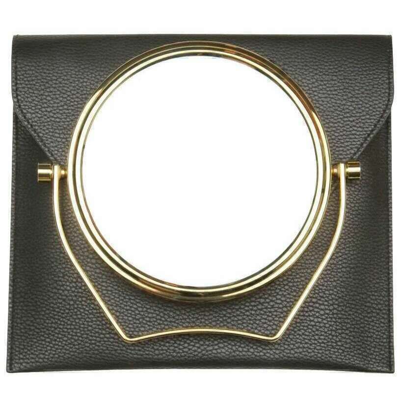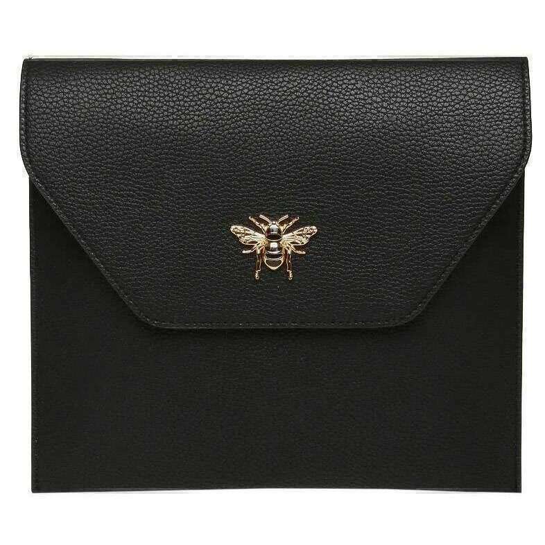 Introducing this women's mirror and case by Alice Wheeler London, it is manufactured from 100% vegan faux leather in a black colour. It measures 18.5cm(height) x 20.5cm(width). It is recommended to wipe clean with damp cloth to keep this compact in good condition. All the compacts come complete in alice wheeler london packaging. The Alice Wheeler London Mirror and Case - Black is a stylish accessory and extremely handy to carry with you when on the go. The beautifully embellished bee logo sits on the front of the case and the press stud closure secures the mirror inside. Inside you will find a 7x magnification mirror with a stand so that you can check up on yourself with ease.