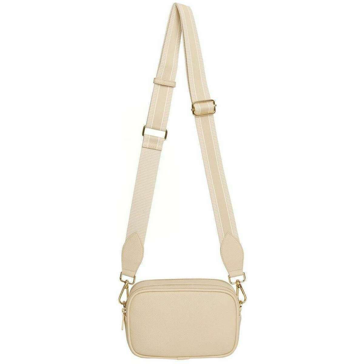 Brought to you by the brand Alice Wheeler London, this ivory white women's pimlico crossbody bag is made from 100% vegan faux leather. It measures 12cm(height) x 20cm(width) x 6cm(depth). It is recommended to wipe clean with damp cloth to keep this bag in good condition. All the bags come complete with alice wheeler london packaging. The Alice Wheeler London Pimlico Crossbody Bag - Ivory White is a stunning hands-free bag to ensure comfort and practicality. The double zip compartments and the internal side pocket allows extra storage to ensure all of your essential items are with you on the go. This stunning design features the signature logo which still gives that simple but elegant look. The detachable adjustable strap is co-ordinated with the colours featured on the bag itself allowing you it to match your outfits perfectly. This bag is made from vegan faux leather means that this bag is completely eco-friendly.