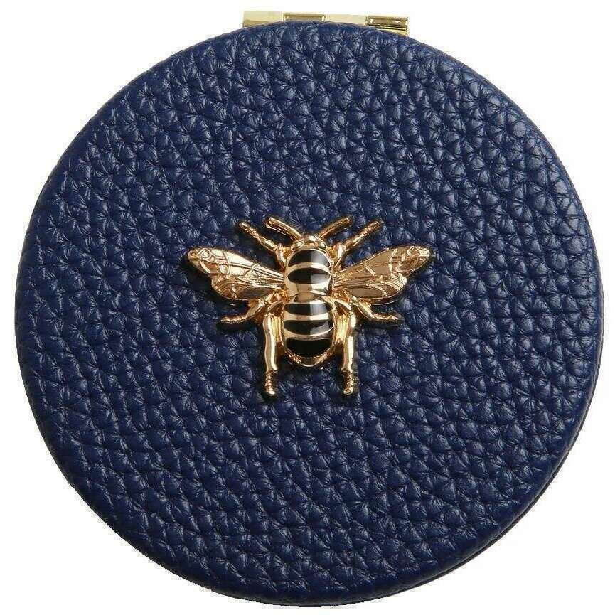 Brought to you by the brand Alice Wheeler London, this navy women's round compact mirror is made from 100% vegan faux leather. It measures 7cm(height) x 7cm(width). It is recommended to wipe clean with damp cloth to keep this compact in good condition. All the compacts come complete in alice wheeler london packaging. The Alice Wheeler London Round Compact Mirror - Navy is the perfect accessory that is essential to carry around with you in your handbag. The beautifully iconic bee embellishment adorns the front of it. Inside is a 7x magnifying mirror with a twin gold-toned metal frame which is ideal for those day to day touch ups.