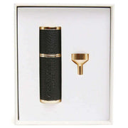 Brought to you by the brand Alice Wheeler London, this black women's travel atomiser is made from 100% vegan faux leather. It measures box - 12.5cm(height) x 10.5cm(width) x 3cm(depth). All the atomisers come complete with alice wheeler packaging. The Alice Wheeler London Travel Atomiser - Black is the perfect travel companion to store your favourite fragrance without having to bring the whole bottle with you risking it smashing or getting lost. The gorgeous textured vegan faux leather, gold hardware, and embossed Alice Wheeler branding combined together gives a stunning and luxurious look perfect for carrying your scent in style whilst keeping your accessories fashionable. This atomiser comes with a stunning small gold funnel so you can refill whenever you desire.