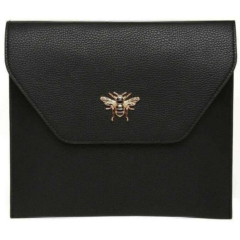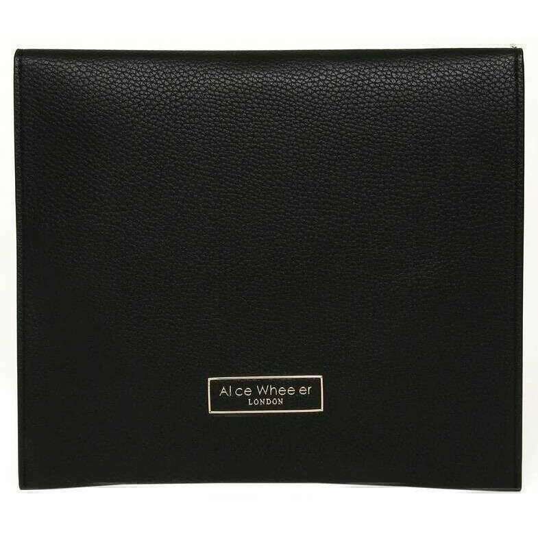 Manufactured from 100% vegan faux leather pouch is this black women's travel mirror and case by the designer Alice Wheeler London. It measures 18.5cm(height) x 20.5cm(width). All the mirrors come complete with alice wheeler packaging. The Alice Wheeler London Travel Mirror and Case - Black is a stylish accessory and extremely handy to carry with you when on the go. The beautifully embellished bee logo sits on the front of the case and the press stud closure secures the mirror inside. Inside you will find a 7x magnification mirror with a stand so that you can check up on yourself with ease.