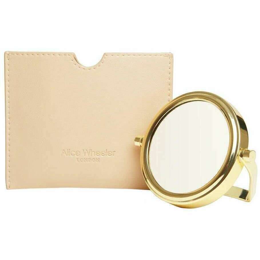 Brought to you by the brand Alice Wheeler London, this sand cream women's venice mirror and pouch is made from 100% vegan faux leather. It measures 9.5cm(height) x 11.5cm(width). It is recommended to wipe clean with damp cloth to keep this compact in good condition. All the compacts come complete in alice wheeler london packaging. The Alice Wheeler London Venice Mirror and Pouch - Sand Cream is a handy accessory to keep in your bag for when you need a quick glance at how your hair is looking or if your make-up needs a little top up. It comes in a faux leather slip case with is debossed with Alice Wheeler branding that will keep the little mirror protected wen not in use. An ideal choice of gift.