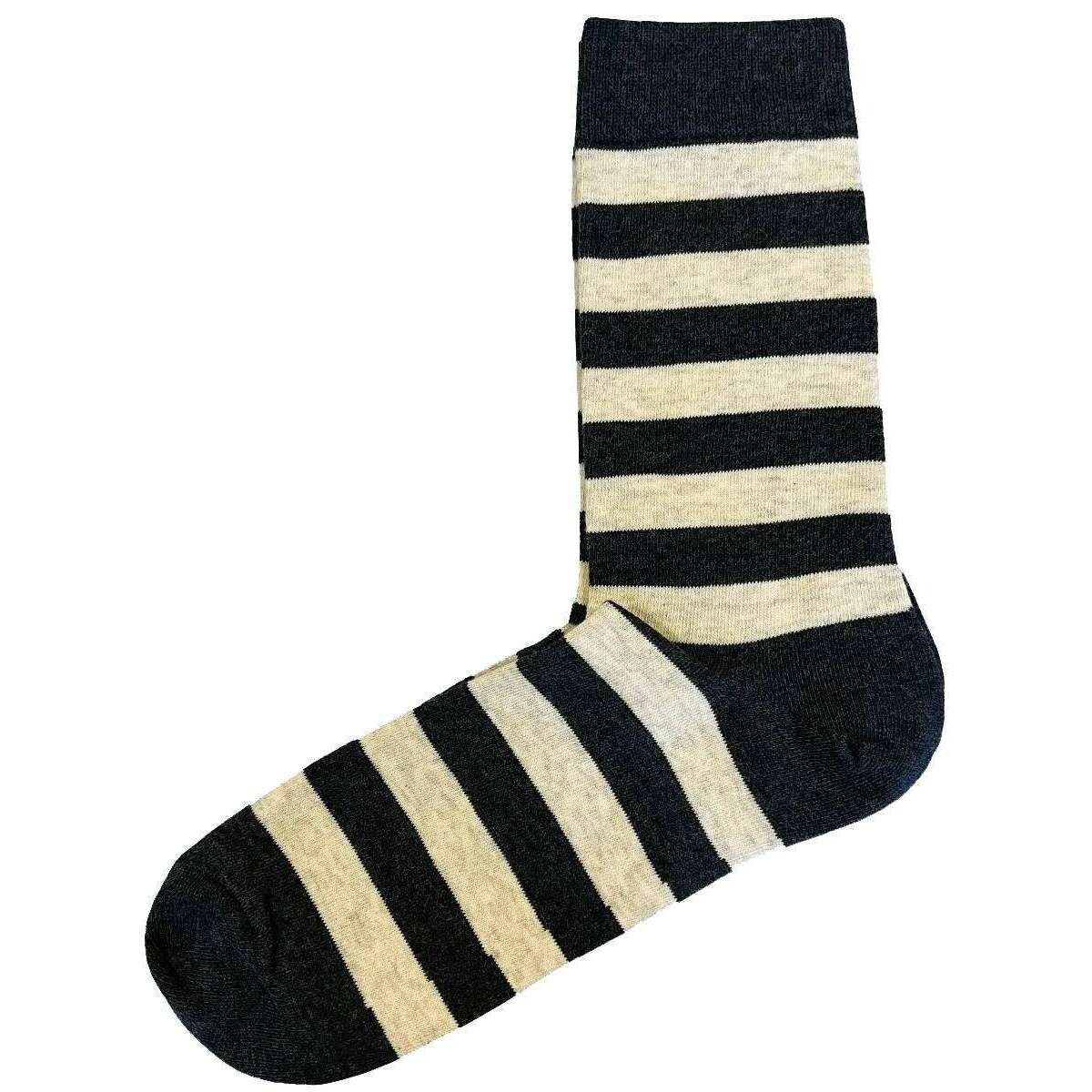 Bassin and Brown Cubillas Hooped Stripe Socks - Grey Navy/Marbled White