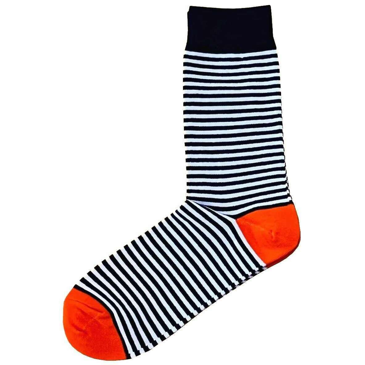 Bassin and Brown Huxley Thin Multi Stripe Socks - Navy/White/Orange