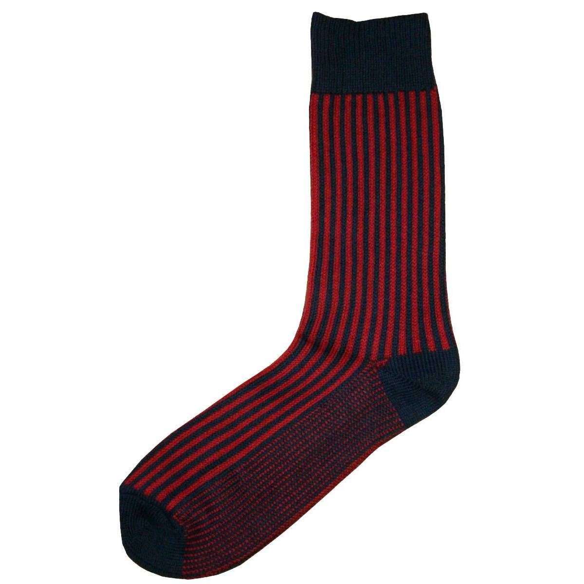 Bassin and Brown Vertical Stripe Midcalf Socks - Navy/Red