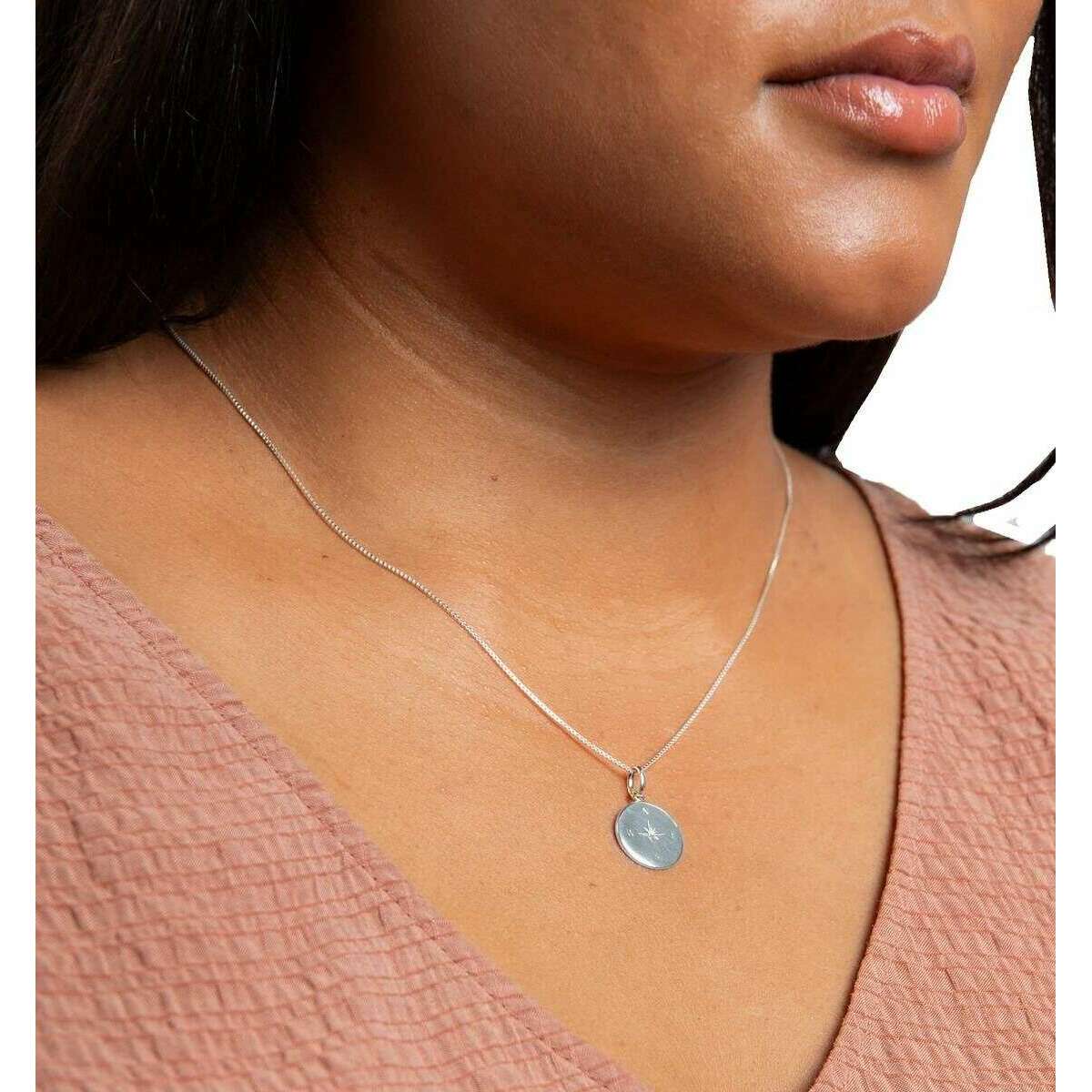 Designer Beginnings has brought you this women's 100% recycled sterling silver pendant using silver tones. It measures 41cm-46cm(length). All the pendants come complete with beginnings presentation box. The Beginnings Compass Design Disc Pendant - Silver makes the perfect gift to those who love adventure and travels with its delicate and fine compass detailing. This simple but intricate piece allows for multiple styling options great for wearing alone or stacking. The extendable 41 to 46 cm length allows for adjustment and a fit that is just right. Crafted from skin safe recycled sterling silver gives a high-quality and luxurious finish.