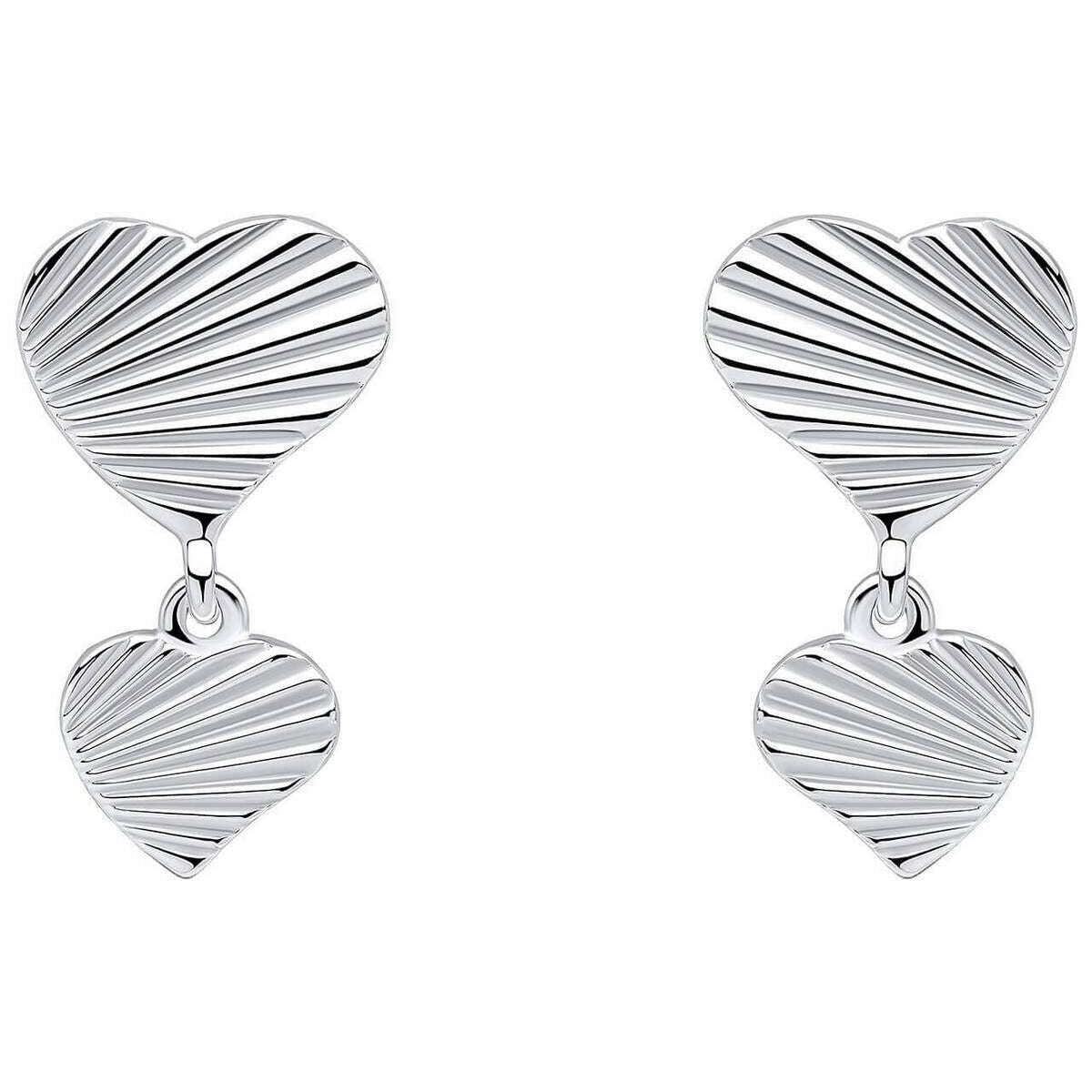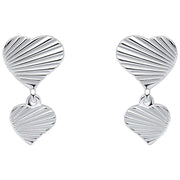 Beginnings Diamond Cut Double Heart Drop Earrings - Silver