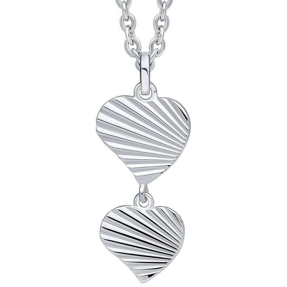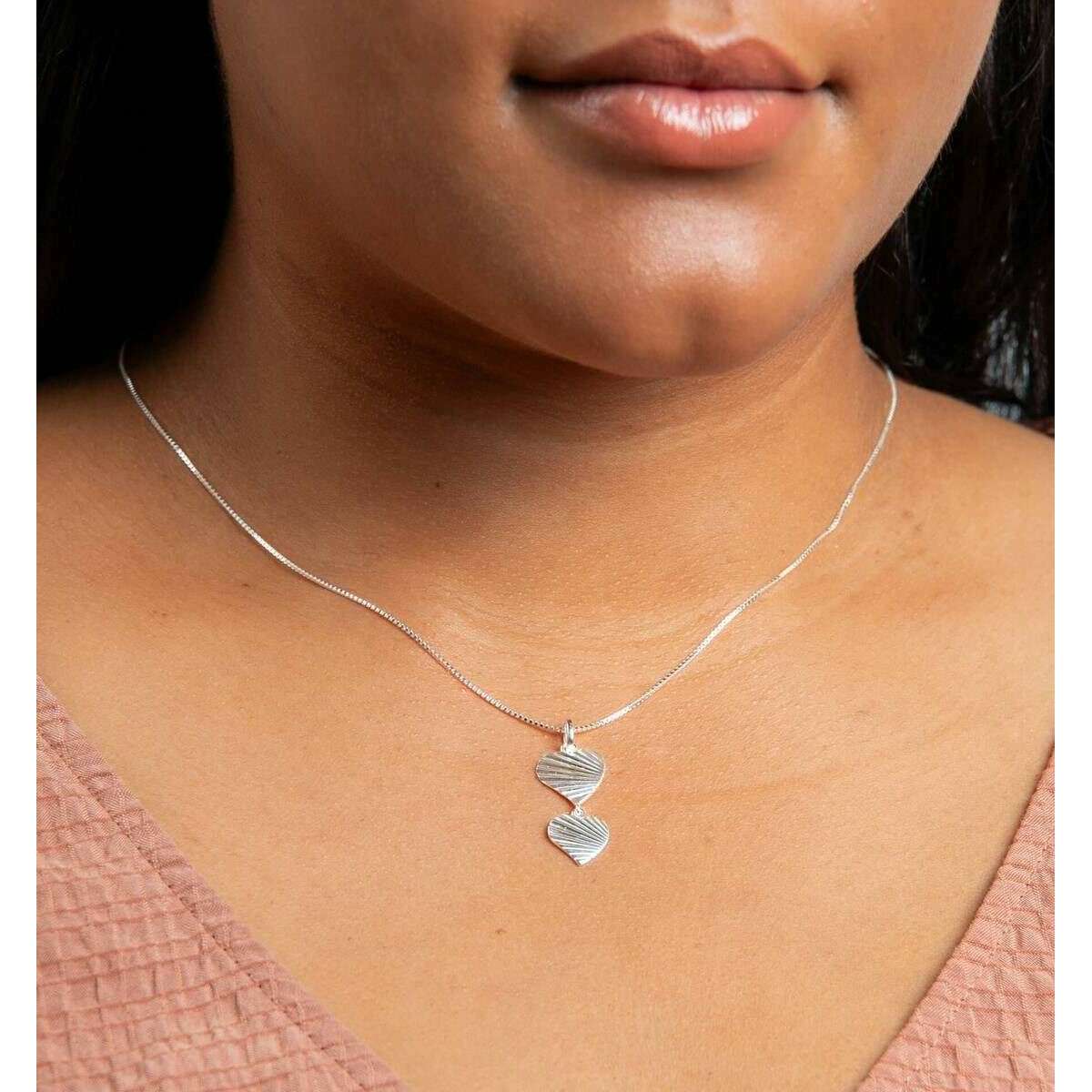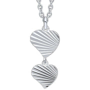 Beginnings Diamond Cut Double Heart Drop Pendant - Silver