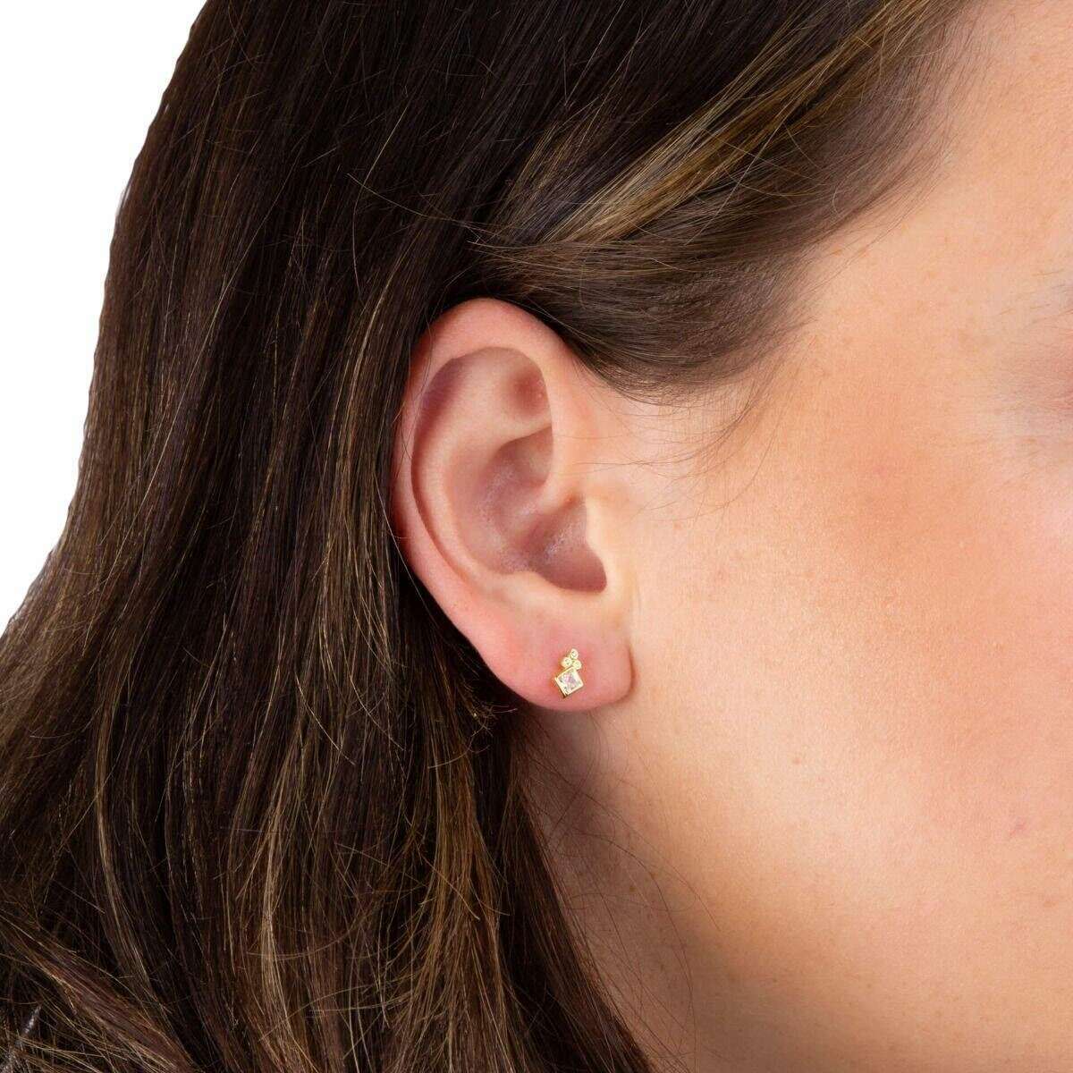 Brought to you by the brand Beginnings, these gold women's diamond shape stud earrings are made from 100% recycled gold plated sterling silver and white synthetic gemstone. It measures 0.8cm(height) x 0.5cm(width). All the earrings come complete with beginnings presentation box. The Beginnings Diamond Shape Stud Earrings - Gold are a must-have in any collection when you are wanting a simple but unique look without being too much. This simple diamond design features white synthetic gemstone stones giving a stunning sparkle. These are the perfect pair for any occasion, making them great for stacking. Crafted with skin safe gold-plated recycled sterling silver will ensure a luxurious wear.
