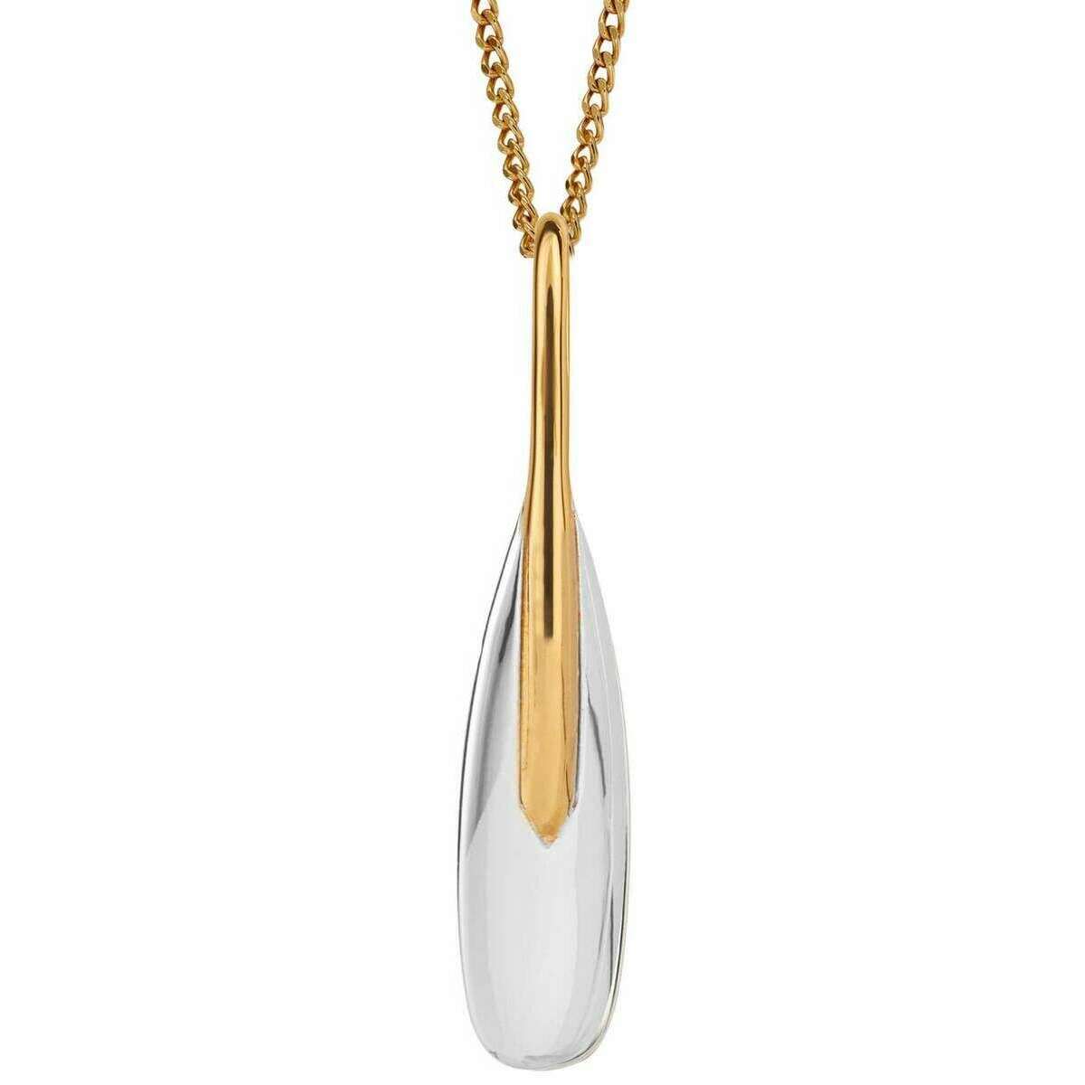 This well made women's elongated pebble drop pendant from Beginnings comes in a silver/gold colour and is manufactured from 100% gold plated recycled sterling silver. It measures 41cm-46cm(length). All the pendants come complete with beginnings presentation box. The Beginnings Elongated Pebble Drop Pendant - Silver/Gold is a beautifully contrasted necklace with a modern touch. Not only is it great for mixing and matching your metals but also for pairing perfectly with whatever you choose to wear. The simplistic but elegant drop pendant creates a classic style, perfect for gifting to silver or gold lovers. Featuring a 41-46cm extendable length ensures this necklace is the perfect fit for you. Crafted with skin safe, recycled sterling silver with some parts featuring yellow gold-plated details creates a stunning shine and a high-quality appearance.