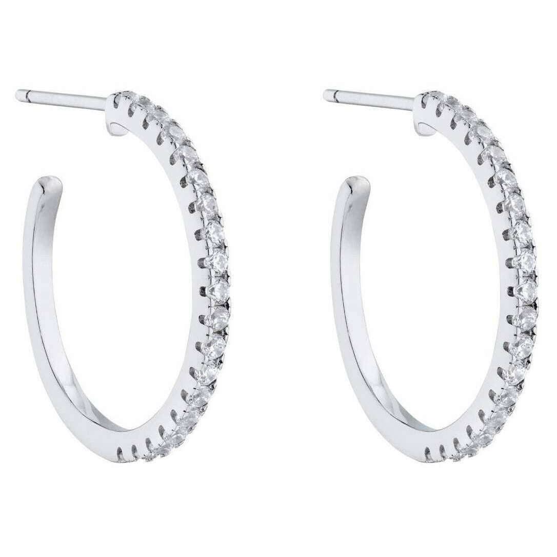 Manufactured from 100% rhodium plated sterling silver and white synthetic gemstone are these silver women's gemstone hoop earrings by the designer Beginnings. It measures 2.1cm(height) x 0.2cm(width) x 0.2cm(depth). All the earrings come complete with beginnings presentation box. The Beginnings Gemstone Hoop Earrings - Silver are the perfect 3/4 hoops for any occasion due to the beautiful but simple design with the stunning white synthetic gemstone within ensuring you are always sparkling. Crafted with rhodium plated sterling silver gives completes this look giving a high-quality and luxurious finish.