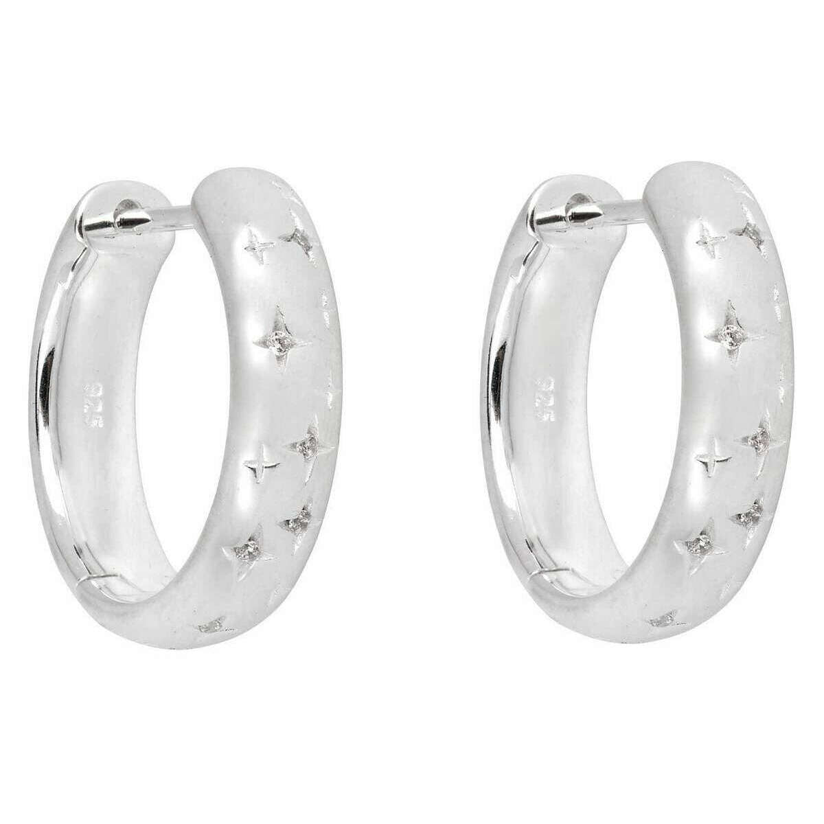 These women's starry night gemstone hoop earrings have been made from 100% recycled sterling silver and white synthetic gemstone, featured in a silver colour and are from the brand Beginnings. It measures 1.6cm(height) x 1.7cm(width) x 0.4cm(depth). All the earrings come complete with beginnings presentation box. The Beginnings Starry Night Gemstone Hoop Earrings - Silver are a beautiful pair of hoops that everyone needs in their collection. This pair has been inspired by Van Gogh's The Starry Night artwork with the gemstone stones embedded all over these hoops creating the illusion of a night sky. Crafted with recycled sterling silver gives this set its stunning eye-catching shine and high-quality and luxurious wear.