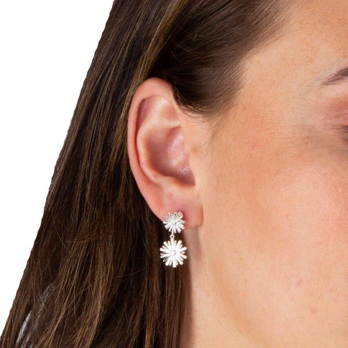 Beginnings Stylised Double Flower Gemstone Drop Earrings - Silver