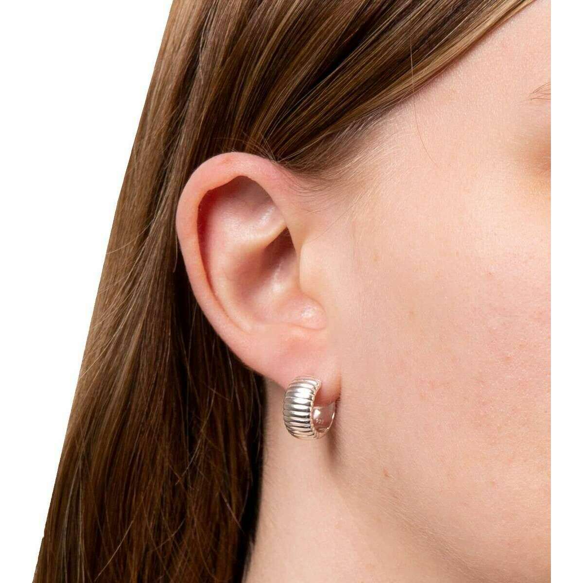 These textured ridges hoop earrings for women are fashioned by the brand Beginnings in a silver colour and are made from 100% recycled sterling silver. It measures 1.4cm(height) x 0.7cm(width) x 1.4cm(depth). All the earrings come complete with beginnings packaging. The Beginnings Textured Ridges Hoop Earrings - Silver have a stunning design offering a stylish and modern touch to your look. These simple but textured earrings will pair perfectly with all of your jewellery and will be a great centre piece for stacking your earrings. Crafted from recycled skin safe sterling silver ensures a luxurious and high-quality feel whilst giving a stunning eye-catching shine.