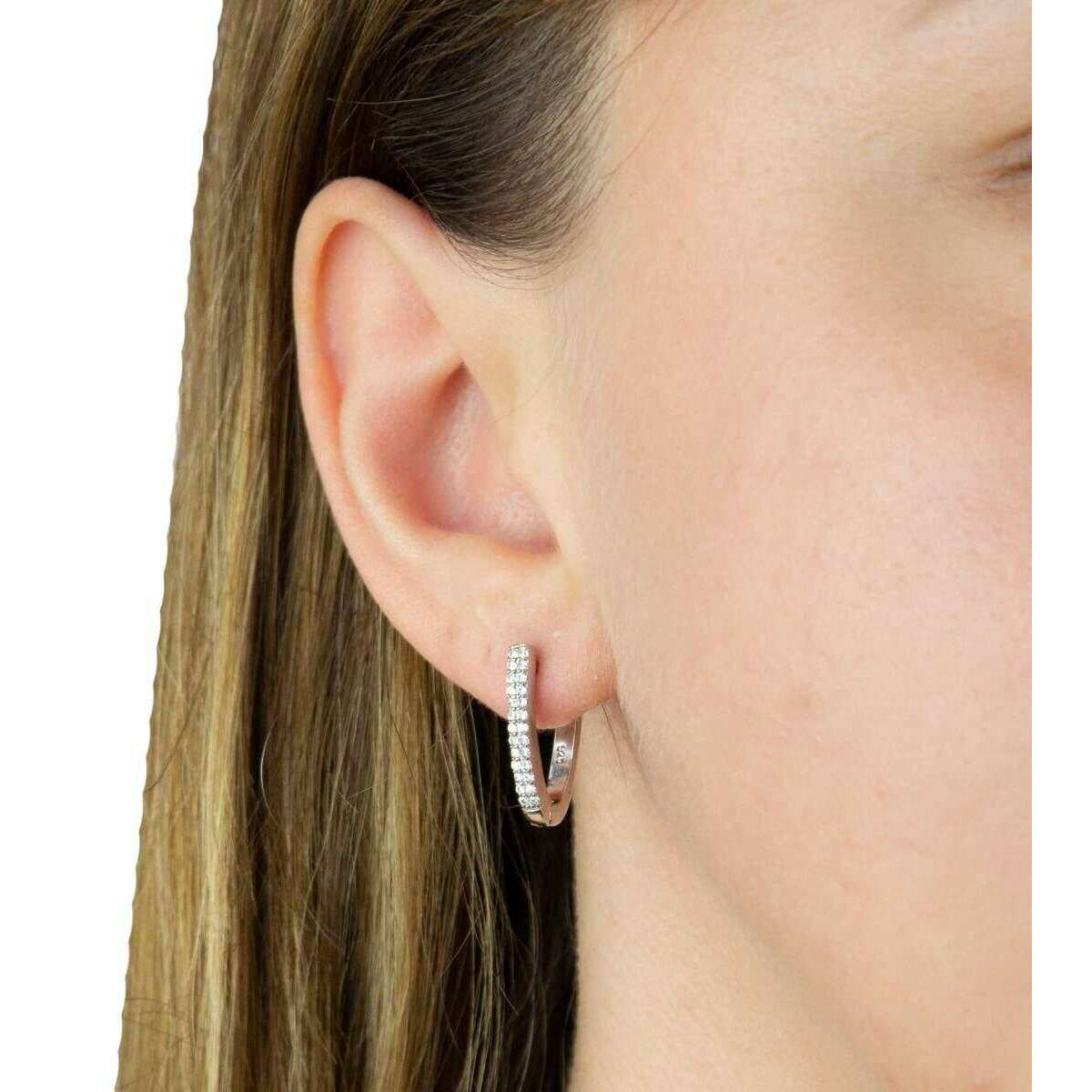 These women's u shaped hinged gemstone hoop earrings have been made from 100% rhodium plated sterling silver and white synthetic gemstone, featured in a silver colour and are from the brand Beginnings. It measures 1.8cm(height) x 0.4cm(width) x 0.2cm(depth). All the earrings come complete with beginnings presentation box. The Beginnings U Shaped Hinged Gemstone Hoop Earrings - Silver feature a unique design that radiates elegance and beauty. Adorned with white synthetic gemstone gives this pair their stunning eye-catching sparkle, great for every occasion. Crafted from rhodium plated sterling silver, these earrings have a hinged style opening.