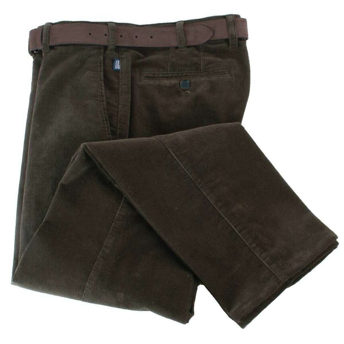 These men's parma b giza cotton fine cord trousers by the brand BRUHL are made from 99% cotton and 1% elastane and are showcased in green. Also the dark green trousers are designed in a plain pattern, It is recommended to wash at 40 degrees to keep these trousers in good condition. All the trousers come complete with bruhl tags. The BRUHL Parma B Giza Cotton Fine Cord Trousers - Dark Green are crafted from luxurious Giza cotton, offering a soft and refined finish that feels exceptional to wear. These trousers are designed to combine classic tailoring with modern comfort, making them a versatile choice for any occasion. They feature a stretch waistband that provides flexibility and ensures a comfortable fit throughout the day. There are two quarter pockets at the front for easy access and two button-through pockets at the back for secure storage. The design includes eight belt loops, giving a neat and structured look when worn with a belt. The bottom width measures 16 inches, creating a balanced and contemporary silhouette. Perfect for smart-casual outfits or office wear, the BRUHL Parma B trousers deliver sophistication without compromising on comfort.