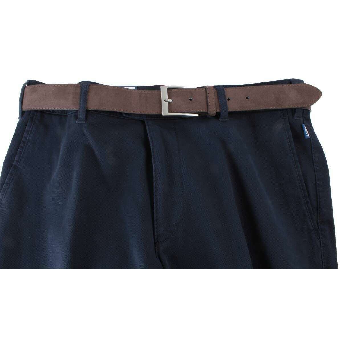 These men's parma b mover high stretch peached chinos have been made from 98% cotton and 2% elastane, featured in a navy colour and are from the brand BRUHL. Also the marine navy trousers are designed in a plain pattern, It is recommended to wash at 40 degrees to keep these trousers in good condition. All the trousers come complete with bruhl tags. The BRUHL Parma B Mover High Stretch Peached Chinos - Marine Navy are designed to deliver comfort, flexibility, and style. Made from a high-stretch fabric, these chinos allow for effortless movement throughout the day. The stretch waistband ensures a comfortable and adaptive fit, while the peached structure gives the fabric a soft and refined finish for a premium feel. These chinos feature two quarter pockets for easy access and two button-through panel pockets for secure storage. With eight belt loops, they provide a stable hold for your belt, and the bottom width of 16 inches creates a modern, tailored silhouette. Perfect for smart-casual occasions, these chinos combine practicality with elegance, making them an essential addition to any wardrobe.
