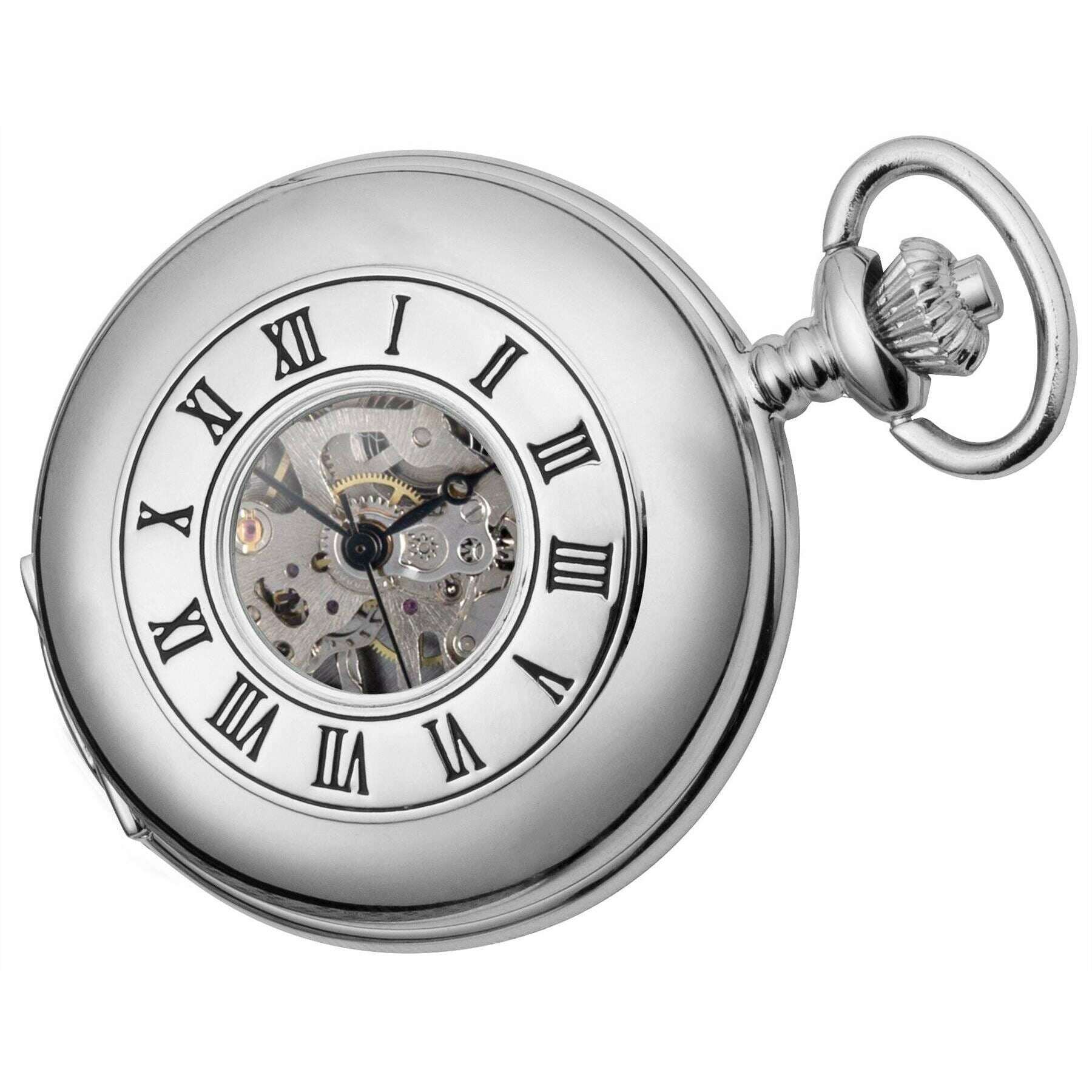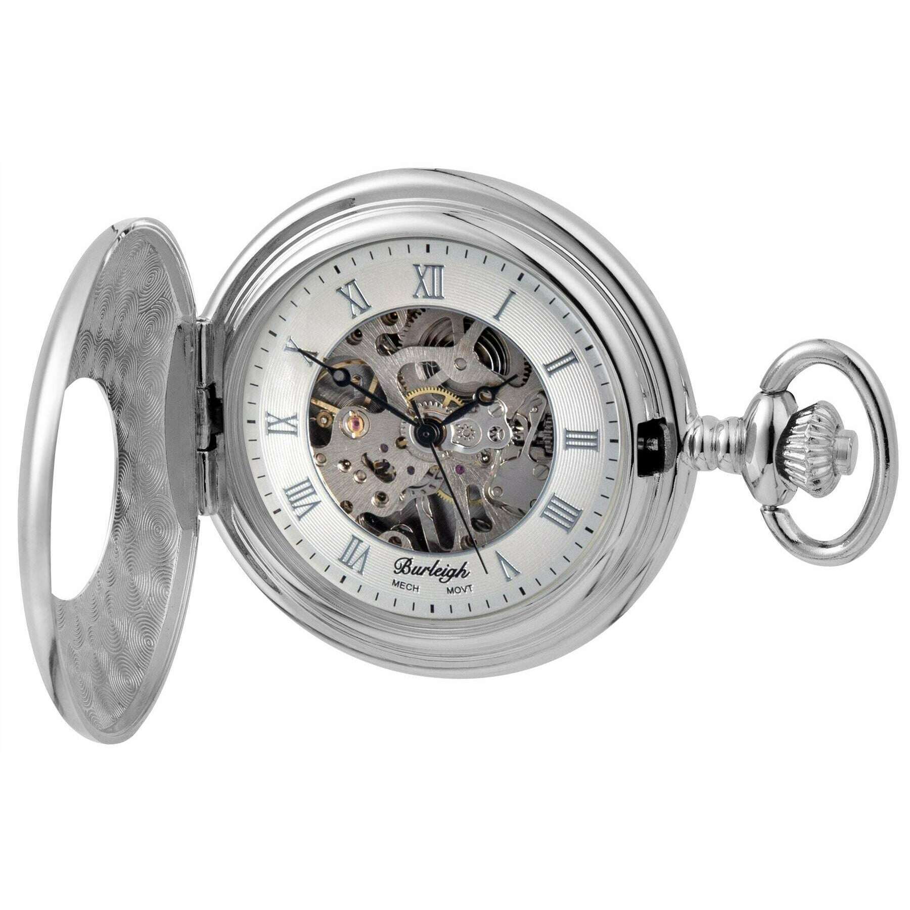 Burleigh Half Hunter Mechanical Pocket Watch - Chrome Silver