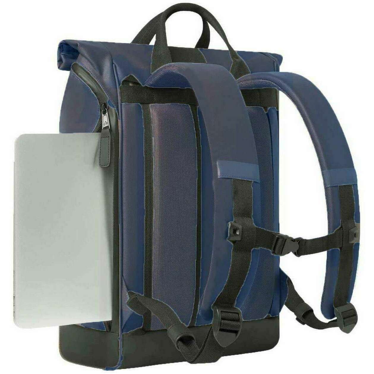 This unisex explorer medium backpack by the brand Cabaia is made from 100% recycled polyester and is showcased in blue. It measures 40cm(height) x 25cm(width) x 16cm(depth). It is recommended to wipe clean to keep this bag in good condition. All the bags come complete in cabaia packaging. The Cabaia Explorer Medium Backpack - Odense Blue offers a stylish and sustainable solution for individuals seeking eco-friendly and comfortable backpacks. Featuring a main 15-inch laptop compartment, this popular rolltop backpack allows you to easily adjust its size to fit all your essentials securely. The outside pocket with zipper provides additional storage options for quick access to essentials like your phone or keys. Full of features including: magnetic closure buckle, reflectors on the front pocket and straps, back padding, a side opening, pocket outside for water bottle, a chest system and a waterproof coating, it is ideal for everyday use. With a generous volume of 23 litres, this vegan friendly backpack not only looks good but also contributes to a greener future.