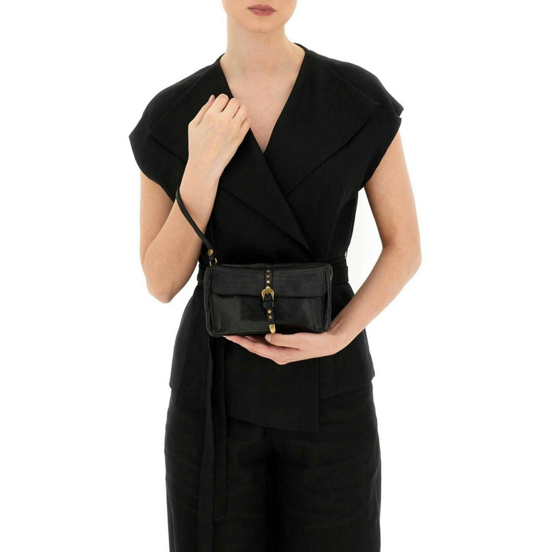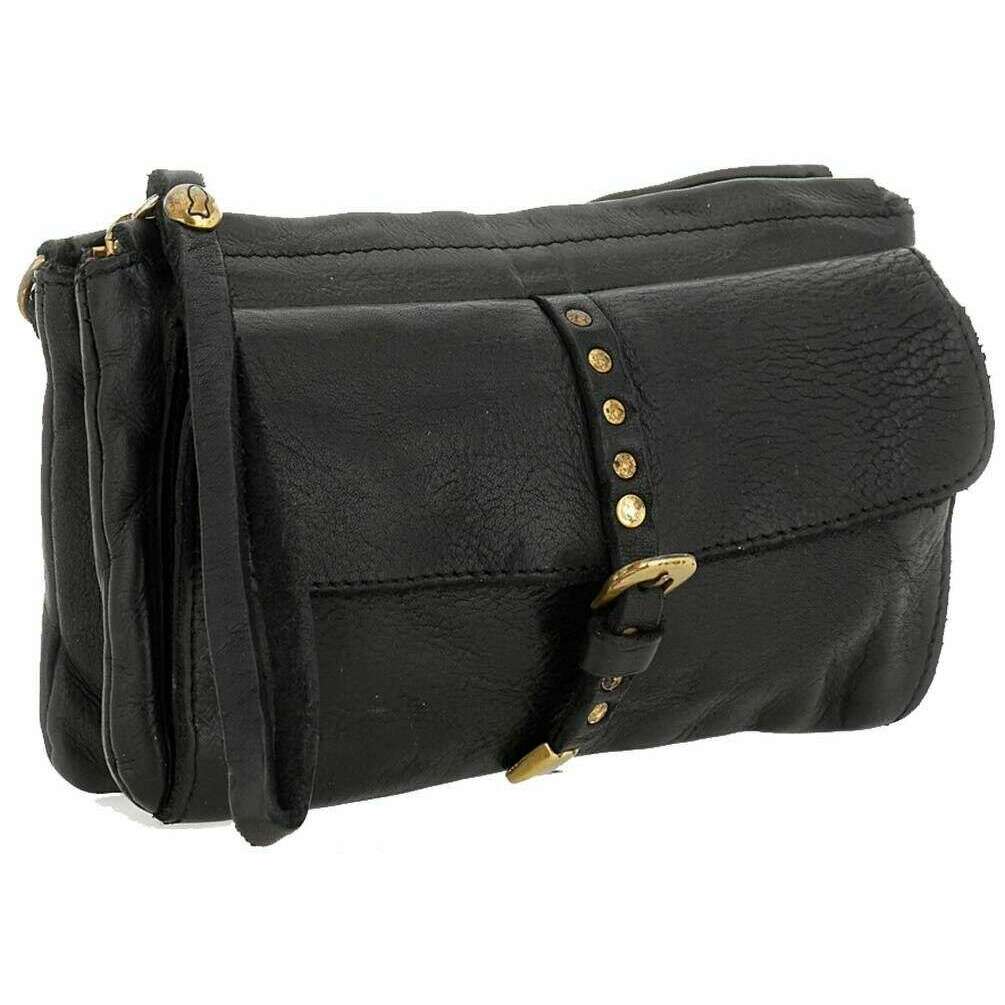 This well made women's kura nives crossbody bag from Campomaggi comes in a black colour and is manufactured from 100% cowhide leather. It measures 12cm(height) x 20cm(width) x 1.5cm(depth). Campomaggi have made this kura nives crossbody bag in Italy. It is recommended to brush with a damp cloth and avoid using detergents to keep this bag in good condition. All the bags come complete with campomaggi packaging. The Campomaggi Kura Nives Crossbody Bag - Black doubles up as a cultch with the detachable wrist strap or a crossbody bag with the detachable adjustable strap, transforming this from day to night. Featuring a magnetic and zip closure for security, a front pocket, internal compartments and card holders for optimal storage and organisation saving you from having to bring a purse, taking up more room. Crafted from premium leather, it features a beautiful vintage-inspired colour achieved through vegetable tanning which a traditional process that uses natural ingredients for a rich finish.