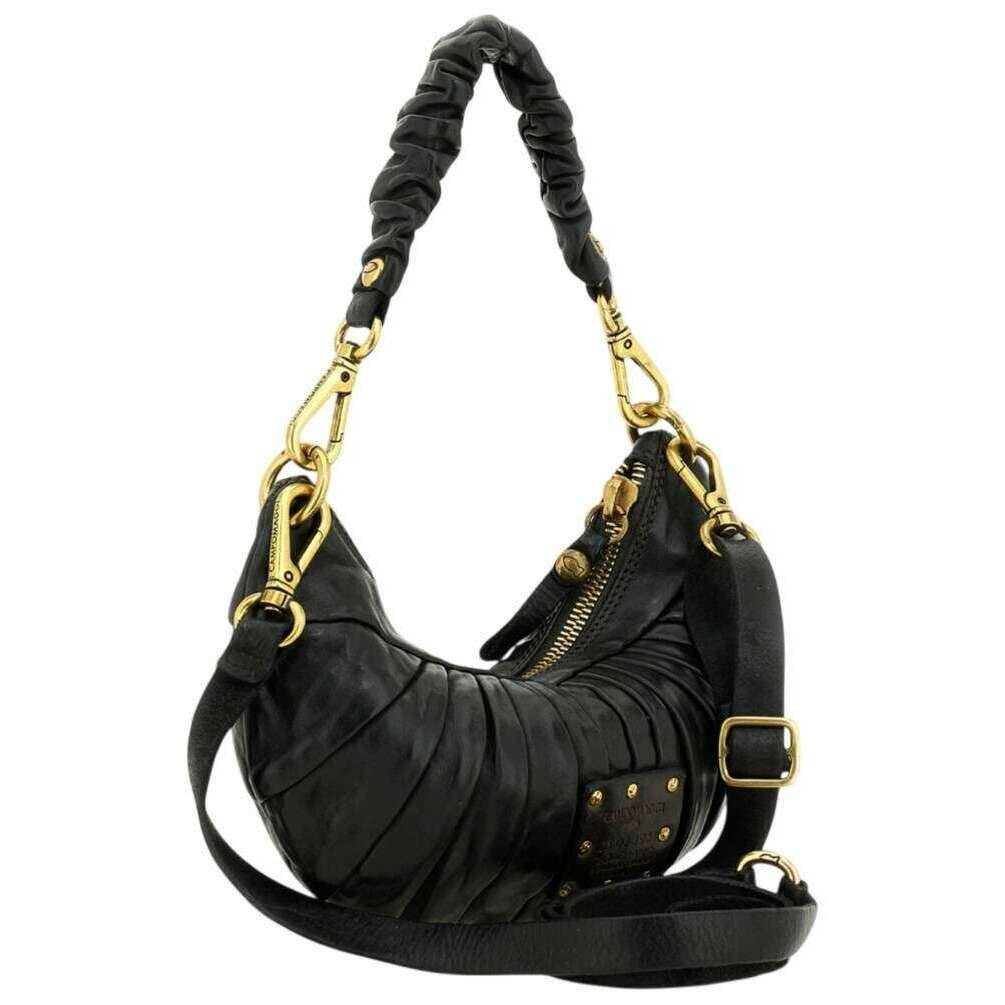 Manufactured from 100% vegtable tanned cowhide leather is this black women's luna small pleated shoulder bag by the designer Campomaggi. It measures 16cm(height) x 26cm(width) x 0.5cm(depth). Campomaggi have made this luna small pleated shoulder bag in Italy. All the bags come complete with campomaggi packaging. The Campomaggi Luna Small Pleated Shoulder Bag - Black is a sophisticated blend of artisanal craftsmanship and elegant design. Crafted from premium vegetable?tanned cowhide leather, it features soft pleating that enhances its refined, sculptural silhouette. The leather develops a rich patina over time, showcasing the natural character that Campomaggi bags are celebrated for. The bag closes securely with a zip closure and opens to a fabric?lined interior designed for everyday practicality. Inside, it includes one internal closed pocket, offering a convenient space to keep essentials neatly organised. Designed for versatile wear, the Luna comes with both a removable shoulder strap and a removable, adjustable crossbody strap, allowing it to shift effortlessly between styles depending on the occasion. Handmade in Italy, the Campomaggi Luna Pleated Shoulder Bag captures timeless elegance, thoughtful functionality, and the unmistakable artistry of true Italian craftsmanship.