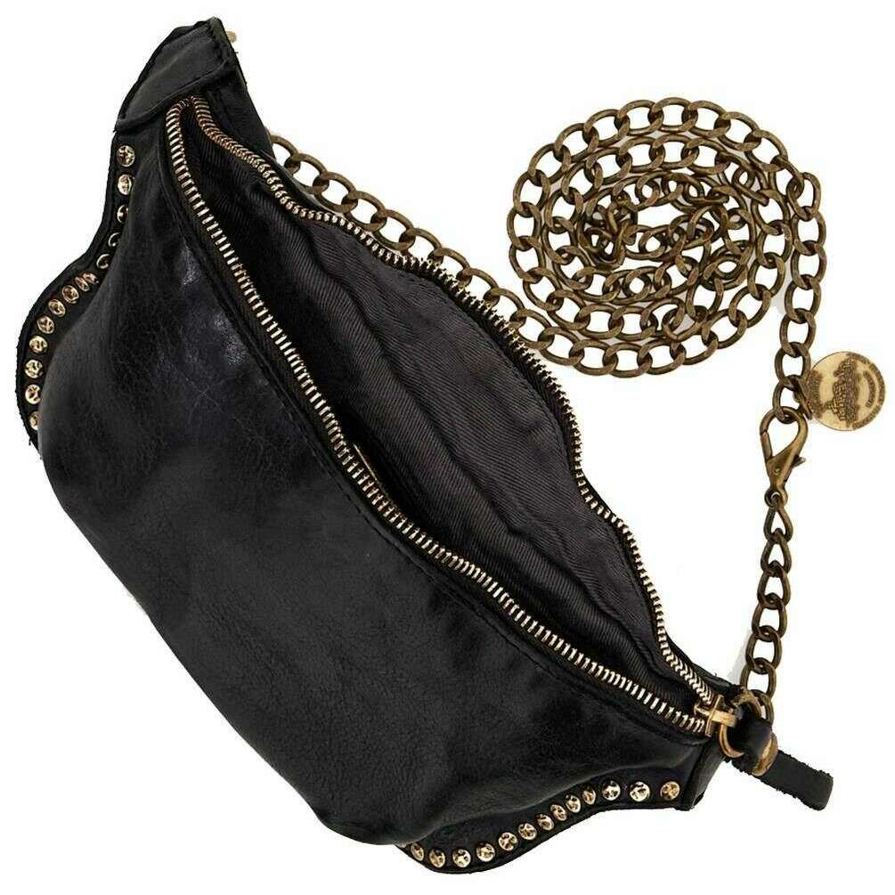 Perfect for women is this Campomaggi black penelope zoe belt bag, it is also made from 100% cowhide leather. It measures 12cm(height) x 20cm(width) x 4cm(depth). Campomaggi have made this penelope zoe belt bag in Italy. It is recommended to brush with a damp cloth and avoid using detergents to keep this bag in good condition. All the bags come complete with campomaggi packaging. The Campomaggi Penelope Zoe Belt Bag - Black is designed for sophisticated wear that combines elegance with effortless luxury. Thoughtfully designed with a spacious main compartment keeps daily essentials together and easily accessible with the zipper closure. Crafted from premium genuine leather, the bag boasts a sleek, luxurious finish while offering durability for long-lasting use. This bag features a beautiful vintage-inspired colour achieved through vegetable tanning which a traditional process that uses natural ingredients for a rich finish.