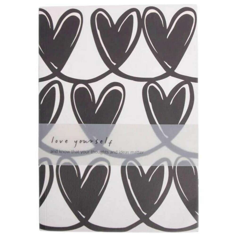 Caroline Gardner Mono Linked Hearts A5 Softback Notebook - Black/Cream