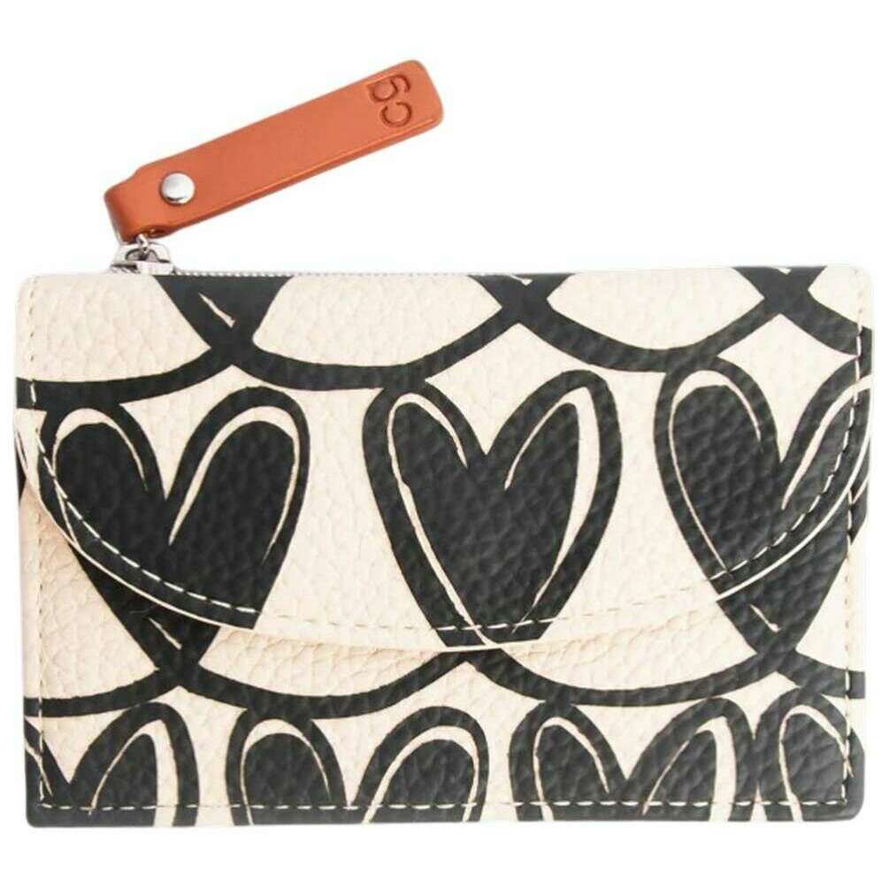 Caroline Gardner Mono Linked Hearts Card Holder Coin Purse - Black/Cream