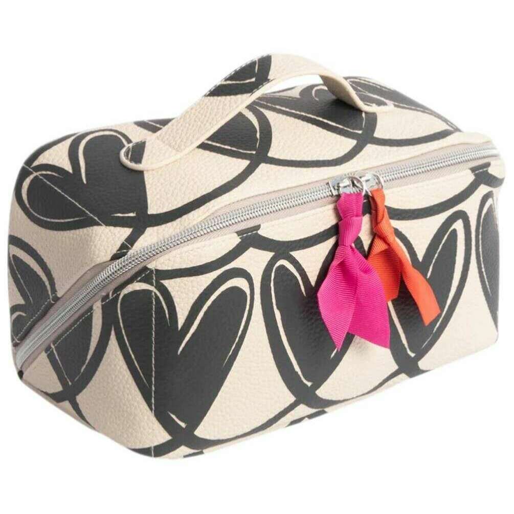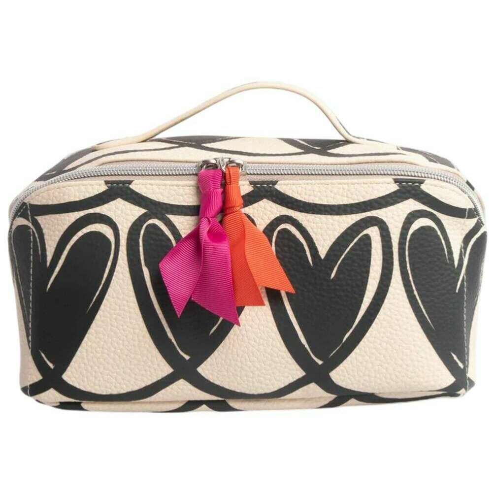 Caroline Gardner Mono Linked Hearts Large Diagonal Wash Bag - Black/Cream