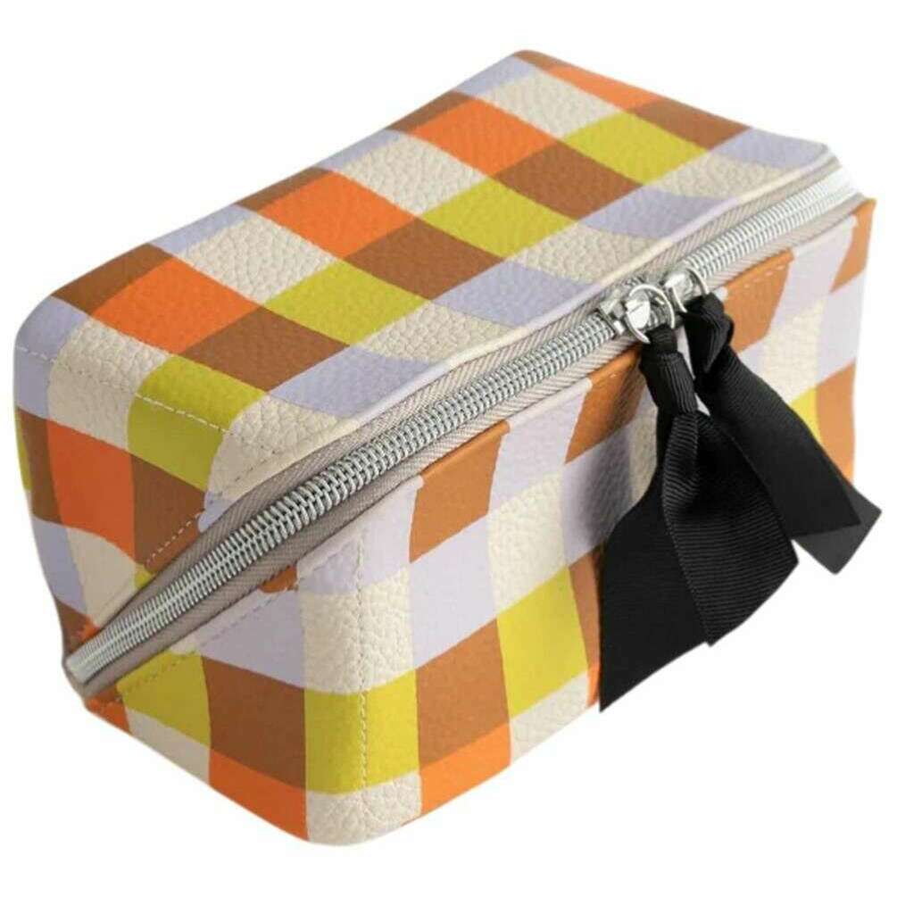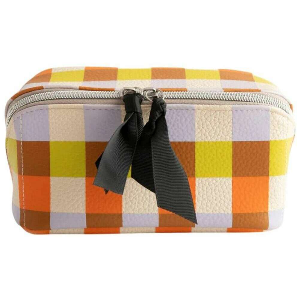 Caroline Gardner Multi Check Diagonal Wash Bag - White/Purple/Orange