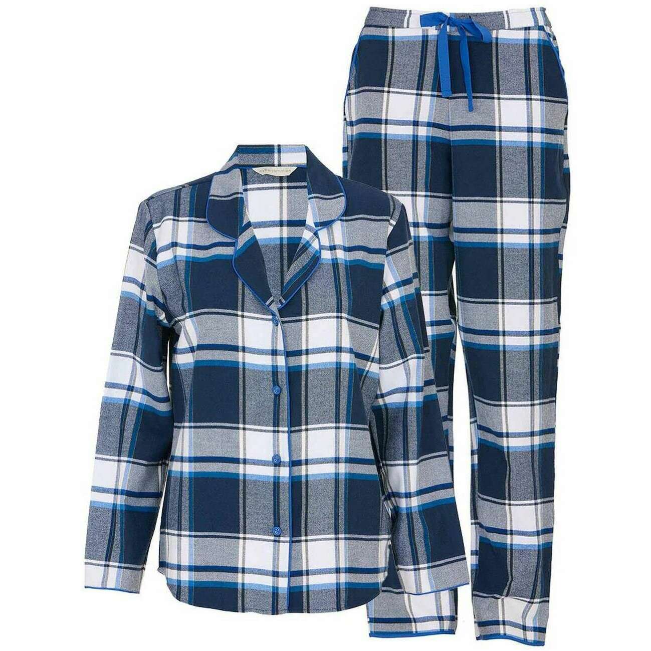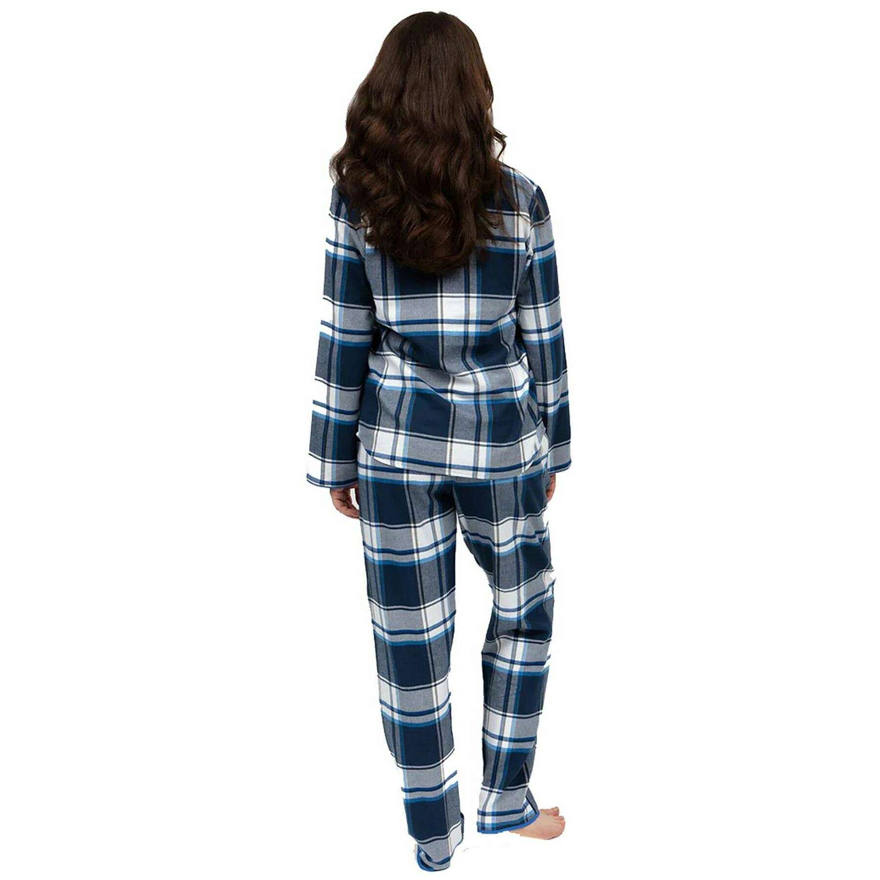 These women's frosty brushed check pyjama set by the brand Cyberjammies are made from 100% cotton and are showcased in navy. Also the navy/white pyjamas are designed in a checked pattern, It is recommended to machine wash inside out, do not soak, wash with like colours to keep these pyjamas in good condition. All the pyjamas come complete with cyberjammies tags. The Cyberjammies Frosty Brushed Check Pyjama Set - Navy/White are the kind of pair that you will want to wear all the time, day or night while in the comfort of your cosy home. The beautiful, checked design offers classic character while the gorgeous cotton material will feel luxurious against your skin. The button up shirt gives you timeless style while the bottoms feature a drawstring to allow for a comfortable fit.