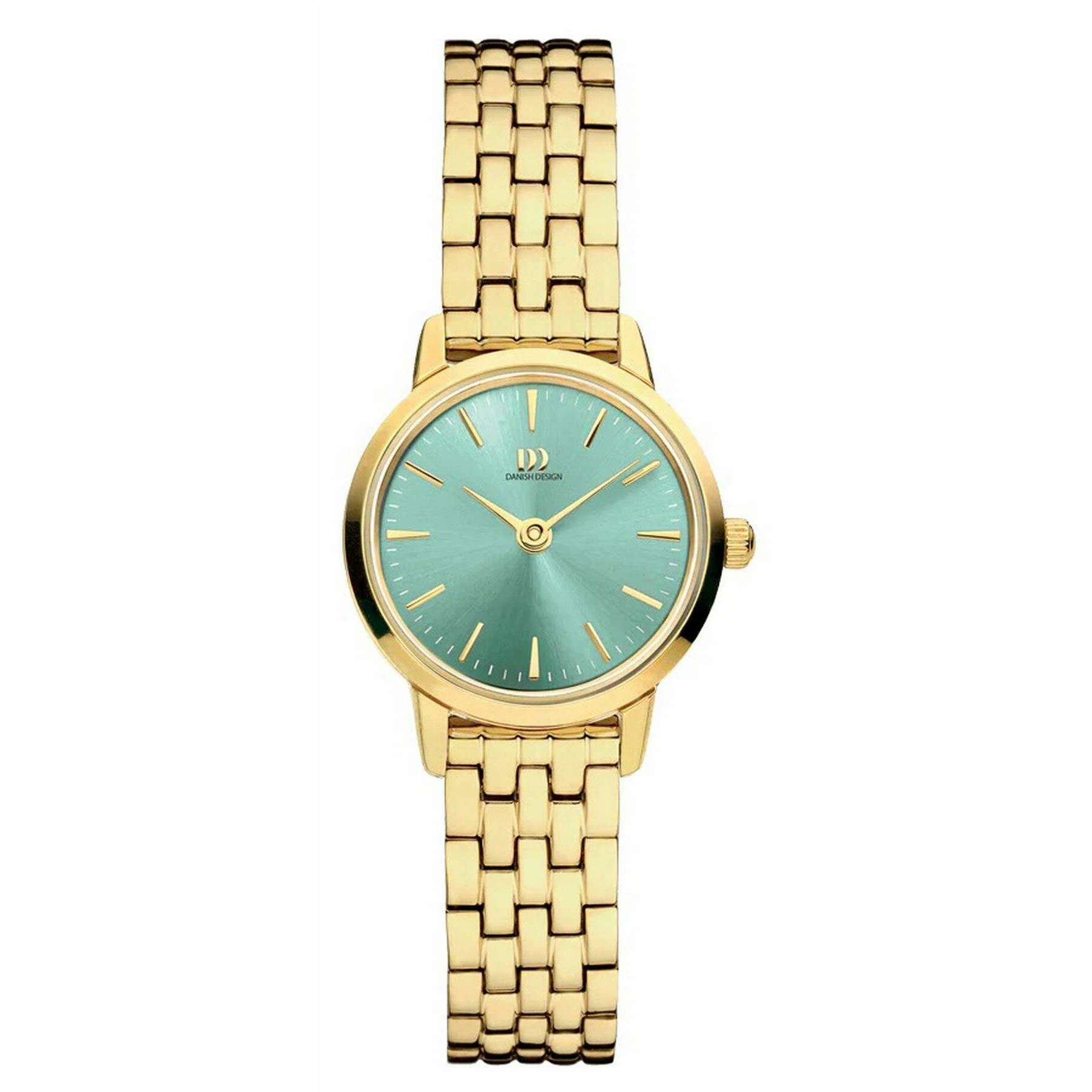 Perfect for women is this Danish Design gold/sage green akilia mini link watch, it is also made from stainless steel. It measures 2.2cm(case diameter). All the watches come complete with danish design packaging. The Danish Design Akilia Mini Link Watch - Gold/Sage Green is a petite and stylish design that will add a touch of shine and elegance to any attire. Featuring a polished metal casing, this stunning watch displays a bright dial with shiny gold hands and a green dial face and is securely fastened with a push clasp. It also features a quartz movement, water-resistant up to 3 ATM and a refined link bracelet, creating a timeless piece that balances subtle elegance with a contemporary edge.