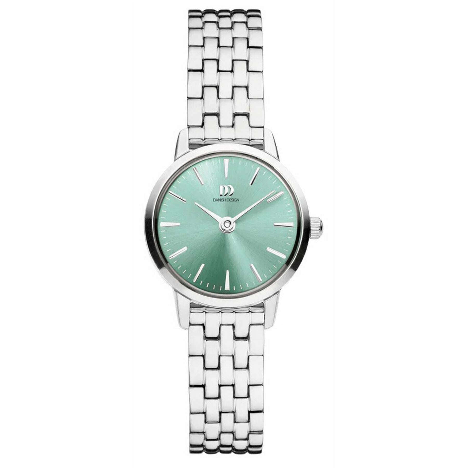 Introducing this women's akilia mini link watch by Danish Design, it is manufactured from stainless steel in a silver/sage green colour. It measures 2.2cm(case diameter). All the watches come complete with danish design packaging. The Danish Design Akilia Mini Link Watch - Silver/Sage Green is a petite and stylish design that will add a touch of shine and elegance to any attire. Featuring a polished metal casing, this stunning watch displays a bright dial with shiny silver hands and a green dial face and is securely fastened with a push clasp. It also features a quartz movement, water-resistant up to 3 ATM and a refined link bracelet, creating a timeless piece that balances subtle elegance with a contemporary edge.