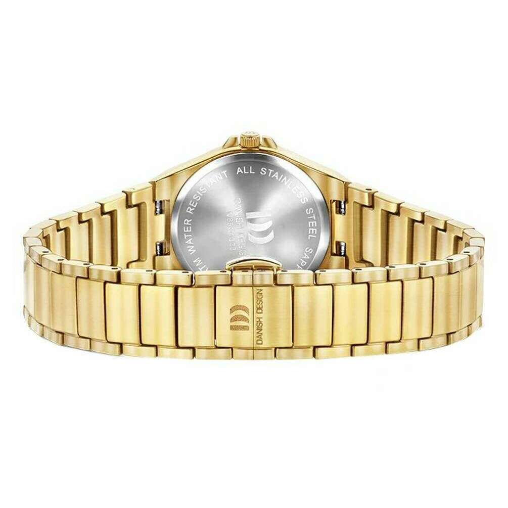 This men's dk pro watch has been made from stainless steel, featured in a gold colour and is from the brand Danish Design. It measures 2.9cm(case diameter). All the watches come complete with danish design packaging. The Danish Design DK Pro Watch - Gold/Sage Green is a tough yet lightweight design that will add a classy style to any attire. Featuring a smooth gold and green design, and a ribbed bezel. Finished with a sturdy link strap and butterfly clasp, this practical piece has water resistance and has a glow in the dark feature so you can tell the time wherever and whenever.
