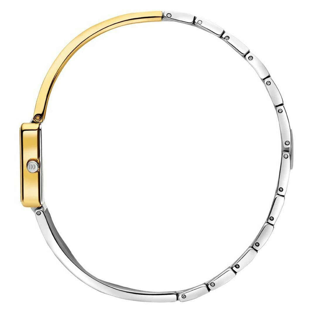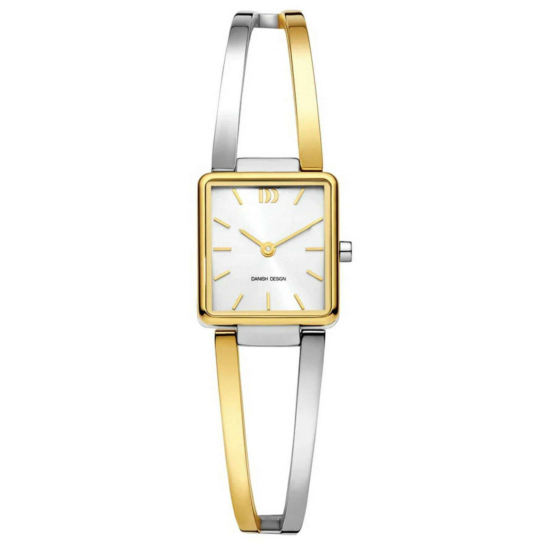 Perfect for women is this Danish Design silver/gold palma two-tone watch, it is also made from stainless steel. It measures 2cm x 2.6cm(case diameter). All the watches come complete with danish design packaging. The Danish Design Palma Two-Tone Watch - Silver/Gold is a delicate and stylish design that will add a touch of shine and elegance to any attire. Featuring a silver and gold polished metal casing, this stunning watch displays a square dial with gold hands and hour markers and is securely fastened with a jewellery clasp. Powered by a precise Miyota GL22 quartz movement, and water-resistant up to 3 ATM, this watch combines timeless appeal with everyday practicality. Finished with a unique two-toned bangle style strap.