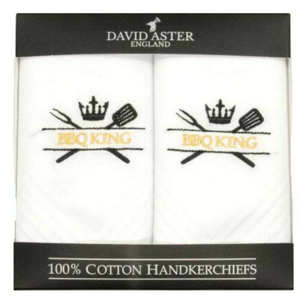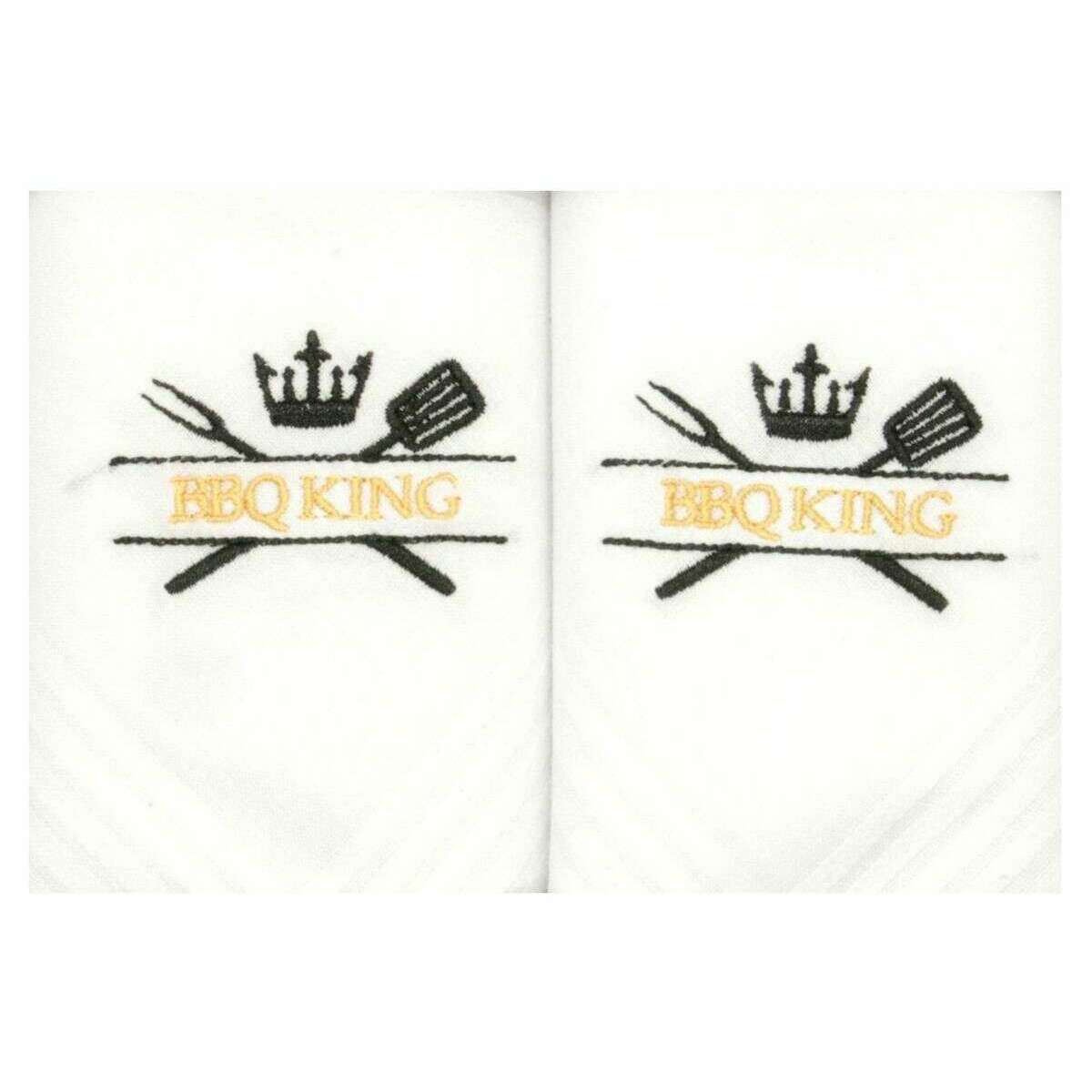 David Aster BBQ King Embroidered Handkerchiefs - White